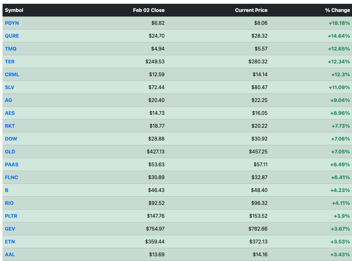 Top Gainers From Yesterday’s Recap