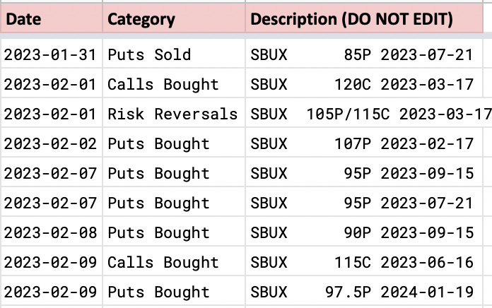 SBUX continues seeing put buys daily, overall from what I’m seeing unusual put buys outpace call buys by quite a bit. Today more puts bought at 97.5 in January
