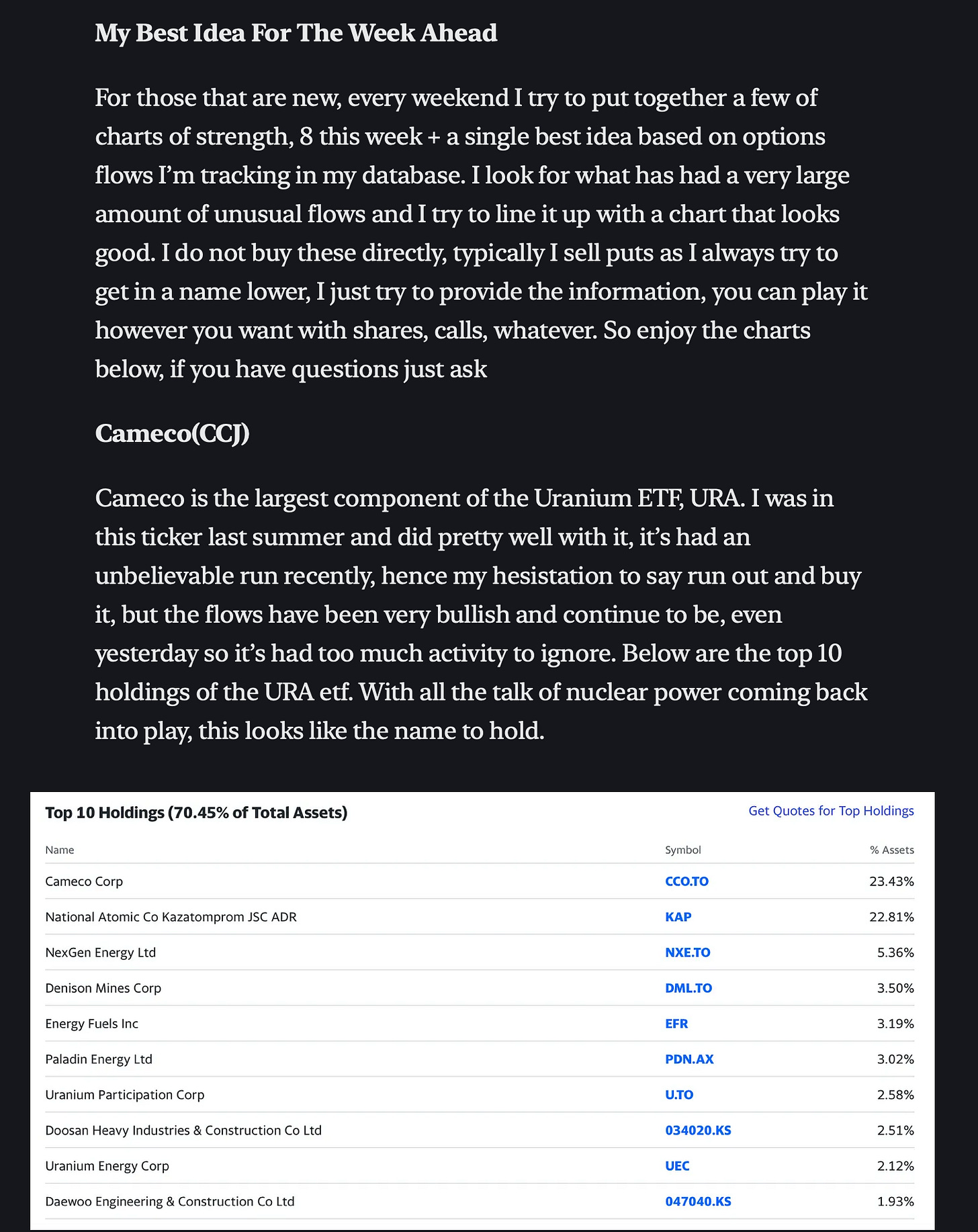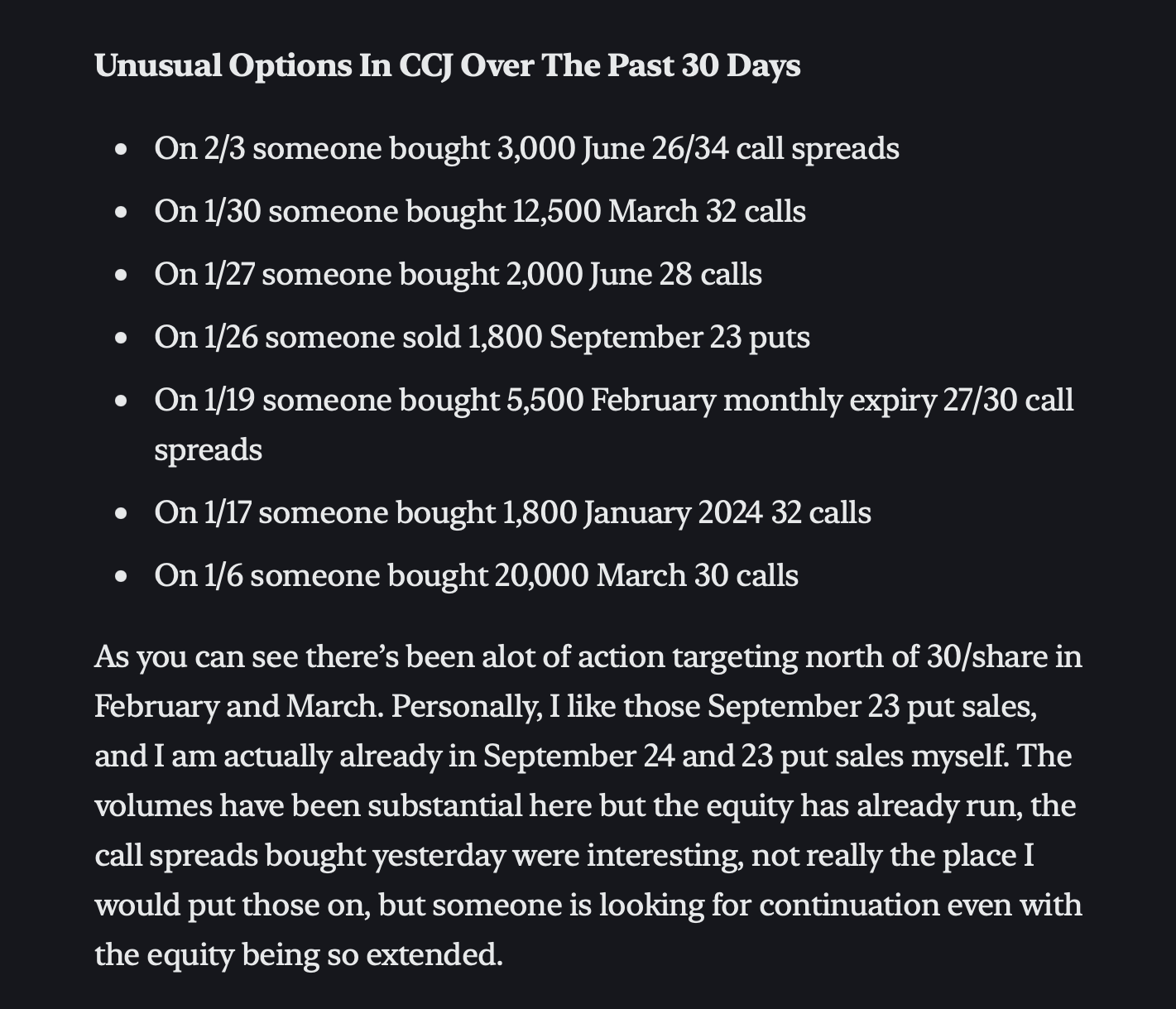 For those who think it was just a coincidence, nothing is, if you remember I even laid out every single unusual trade I had taken note of in the last month on CCJ and here was that long list, all those players were rewarded handsomely today.