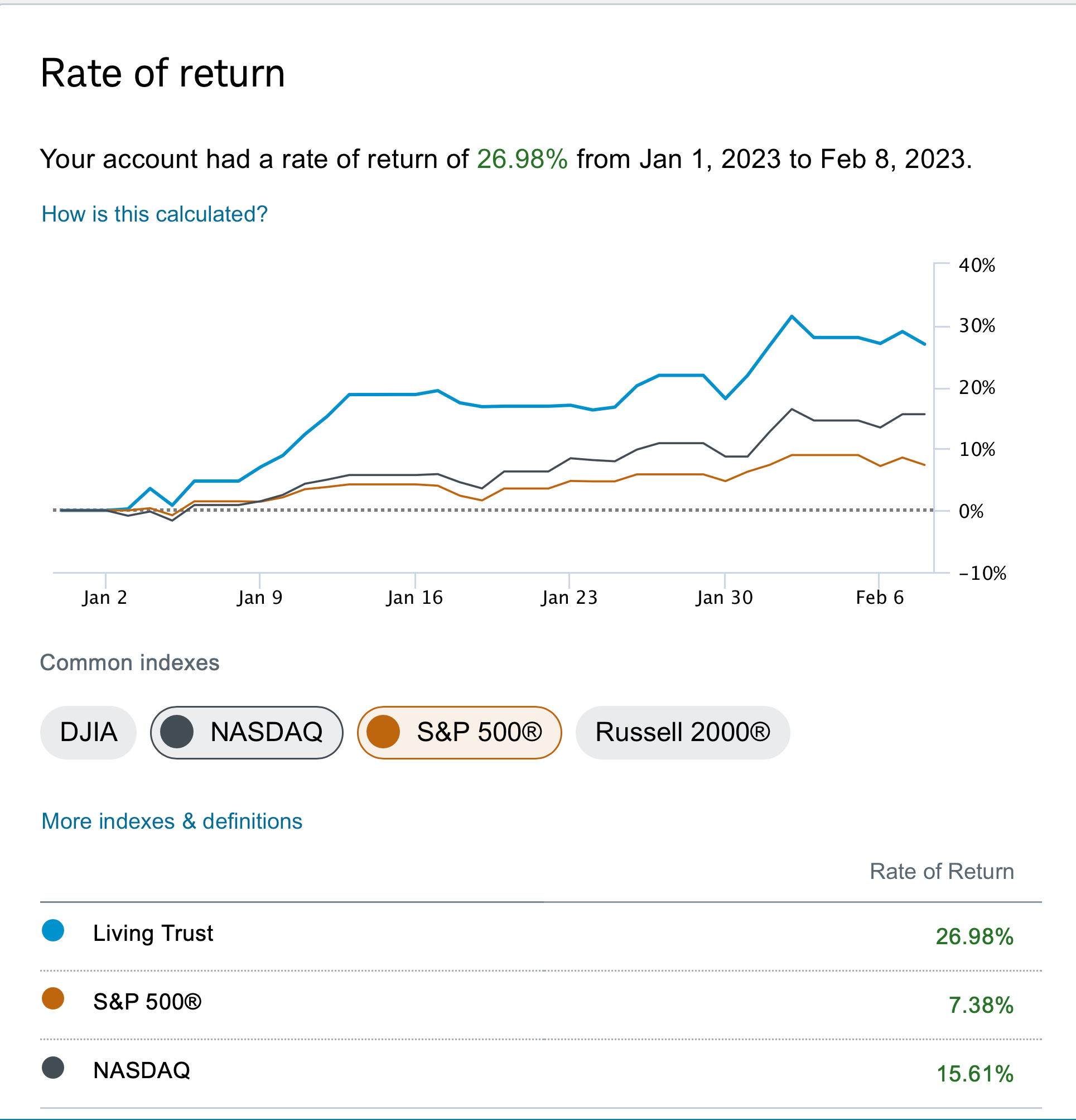 As I wrap up this 5th week of 2022, I can’t say anything but good things coming into today I was up 27% outpacing the S&P at 7.38% and the Nasdaq at 15.6%. Again as a put seller, my objective isn’t to outpace the market this early in the year, typically because most of my trades are short puts out in 2024, the back half of the year is where my portfolio usually takes off. So I’m pleasantly surprised with the early outperformance. I still think the market mostly goes lower from here the rest of the year which probably stings me for a little, but allows me to outperform vastly into the 2H and into the end of the year. I still stand by my prediction from week 1 that I will end the year up 50%+ and the market will be flat. A decline from here could do it.