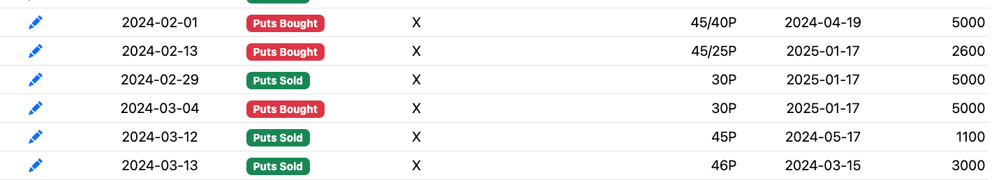 Another fun one from recently was X, remember this name was acquired in December, and alot of put buys came in recently. Alot of you in the discord were wondering what was going on with that, well we got our answer just now with the stock down 10% with the Biden Administration concerned with Nippon Steel making the bid.