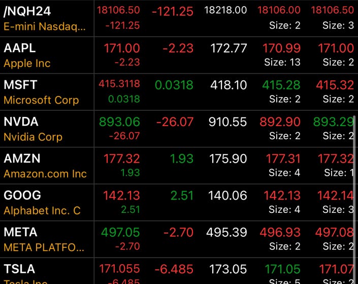 We got a sharp selloff in tech stocks today. It all began with the Wells Fargo downgrade of Tesla from $200 to $125 this morning. At this moment Tesla is the worst perfomer in the S&P this year. I know alot of you are fans and have asked me why I’ve been so bearish on Tesla forever and you’re seeing it unfold in real time. ZIRP is over, and none of the things that sustained Tesla for years ever came to fruition and the company is still 10x the market cap of car makers like Ford and GM. Still a long way down in my book.