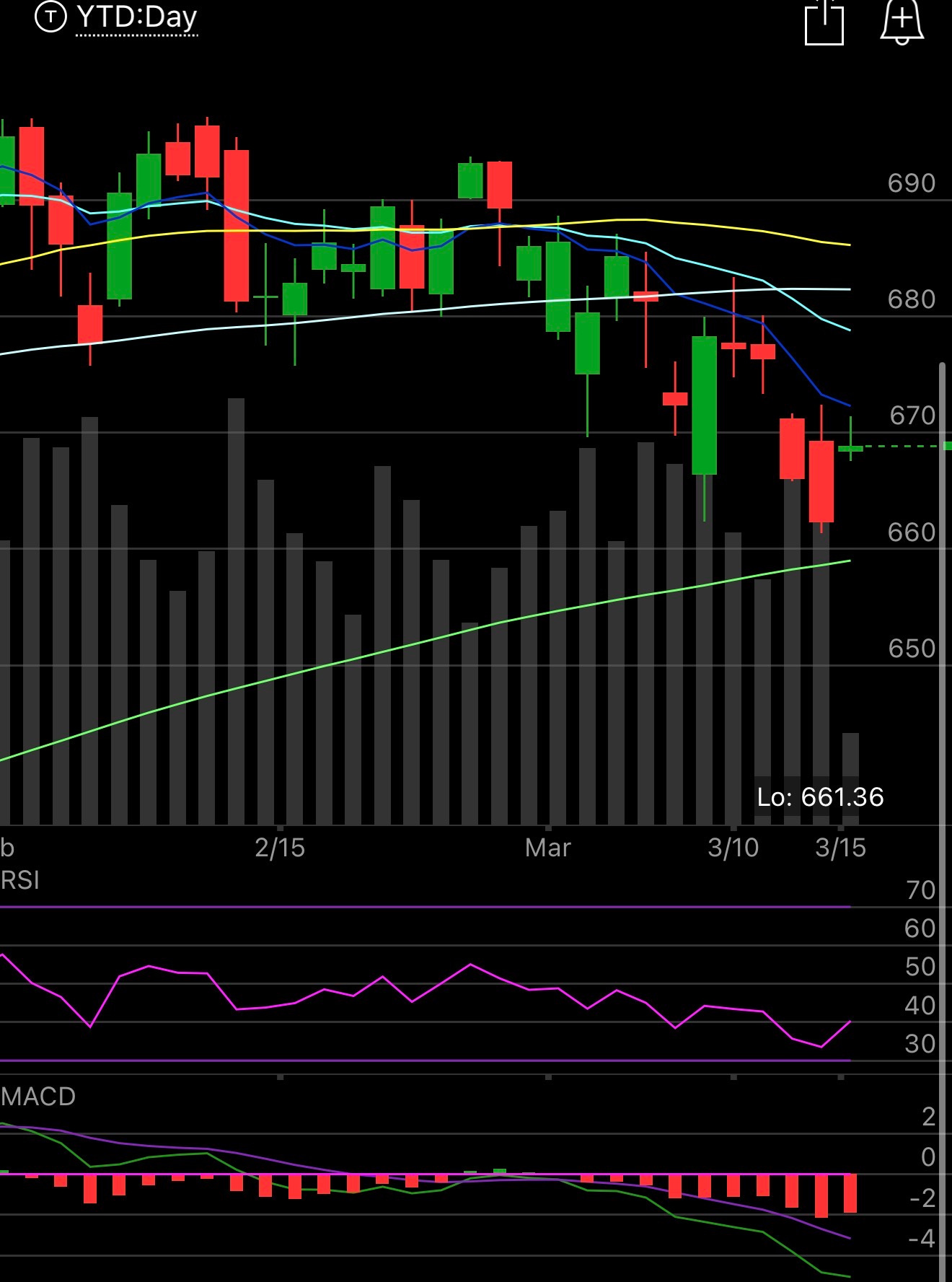 The SPY is making a fairly meaningless move today as we gapped up but remain below the 8 ema. The VIX is also down 11% while oil is also selling off fueling this rally. With that said, this is still a clear downtrend even as rumors begin to swirl of Trump wanting to end the war. Look the reality of the situation is this, we entered this war with Israel saying we wanted regime change and while all this bombing has definitely set Iran back years which is a win in itself the fact remains that without regime change this is not a win right now. The big fear was Iran getting their hands on a nuclear bomb, that threat still exists even if we declare victory and go home today. Regime change is not happening without a long war. So Trump is in a pickle where he can leave whenever but that doesn’t mean Hormuz is back to normal which means oil would remain bid and the threat we started this over, Iran having nukes, would still persist. If we leave it would mean Trump chose to try and save the economy and market by realizing the war was not good for either. That is definitely still an option, but again, the ball is in Iran’s court right now because Hormuz won’t normalize until Iran stops with the drone attacks and tankers can go back to normal.