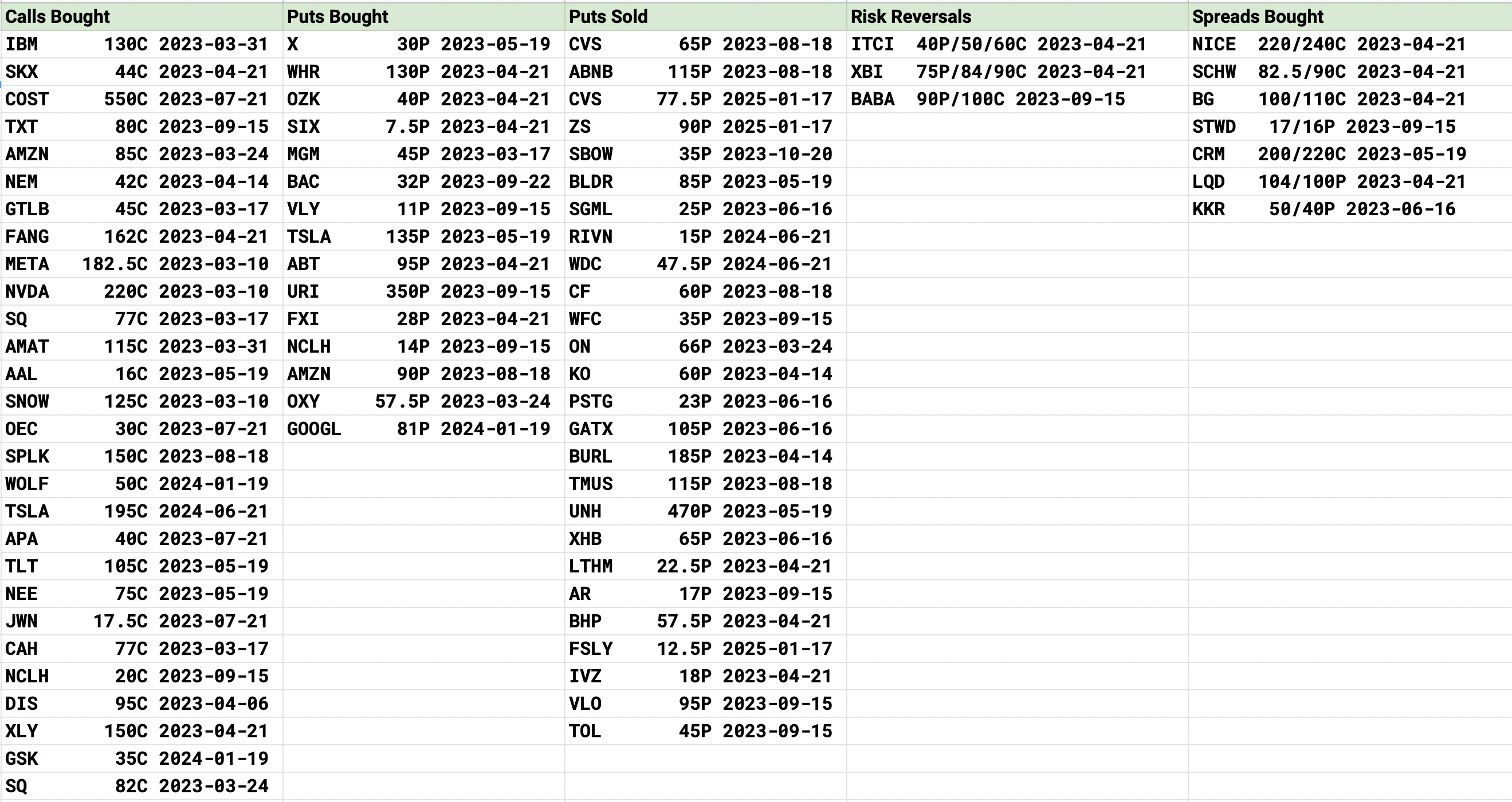The ITCI risk reversal was interesting selling 40 puts to finance a 50/60 call spread in April. I don’t know this name but very interesting trade.