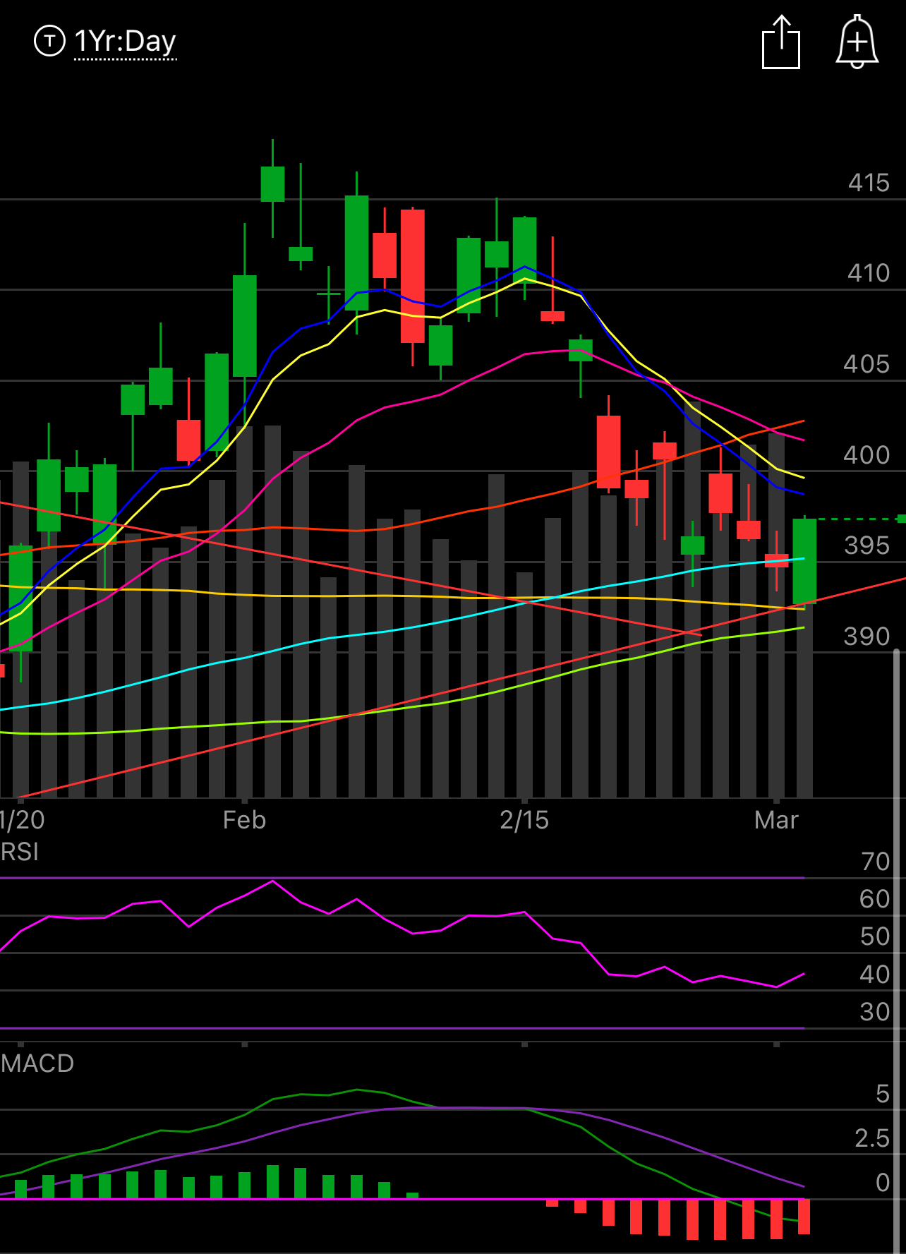 Could this be like the bullish engulfing we saw a few months back? That remains to be seen, the one in October that you can see below kicked off the whole uptrend that we are in at this moment. Again the economy is awful, but the price action is the price action and until we break down, this is looking bullish, as a put seller, it makes no difference to me.