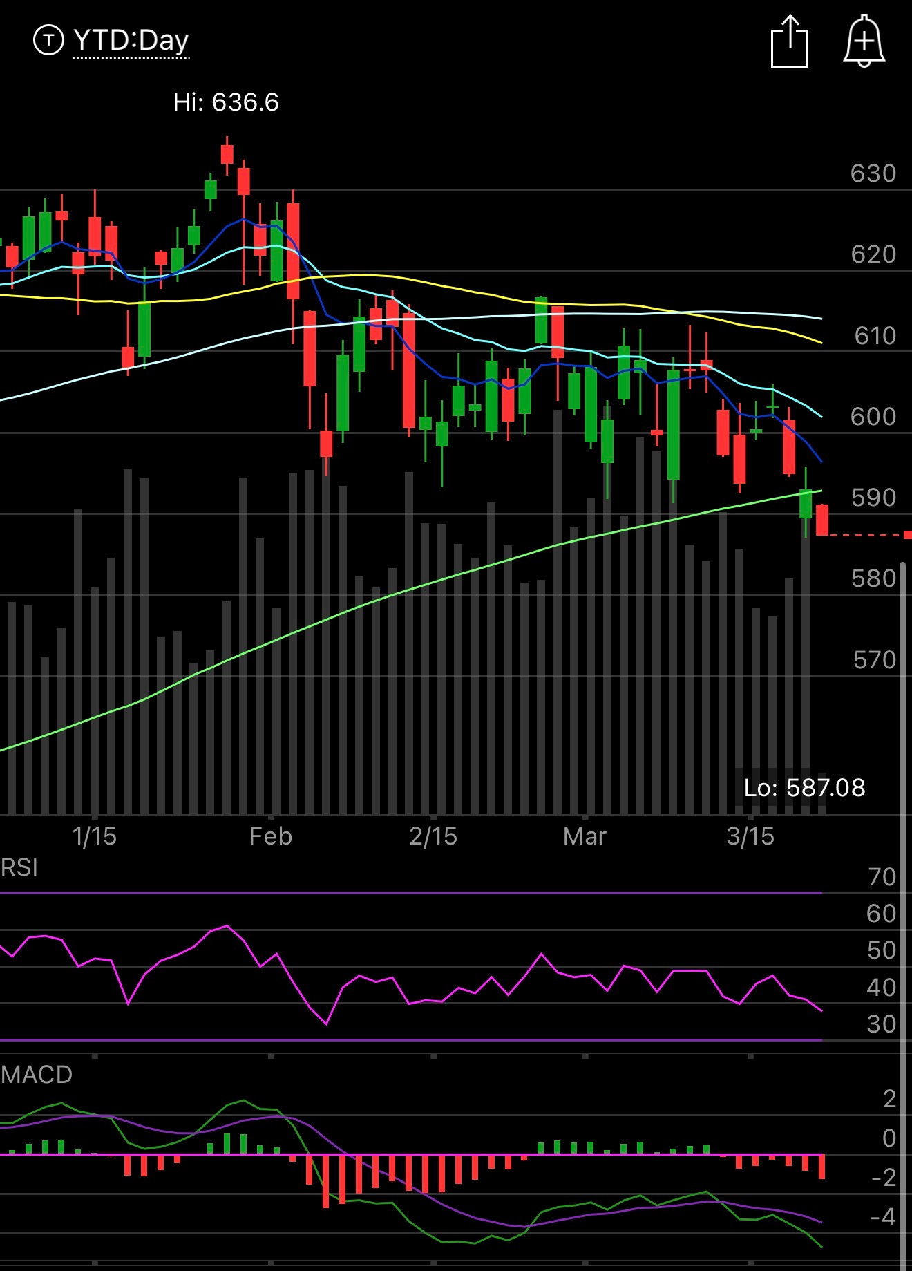 The QQQ is the same deal, just sustained weakness as the VIX remains bid. We’ve seen this on friday’s the last few weeks, nobody wants to hold into the weekend with who knows what coming from the war. Again just like topping is a process that took months, bottoming is a process too and we want to see these moving averages be reclaimed, the objective isn’t to try and be a hero trying to time a bottom, its about pressing things once the uptrend resumes.