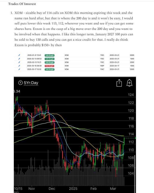 XOM - In monday’s recap here I noted these weekly Exxon calls that were bought for .70 at the time, Exxon ending up hitting a high of 116.47 this week and those calls more than tripled. That was an odd buy on a weekly timeframe and they paid off immensely.