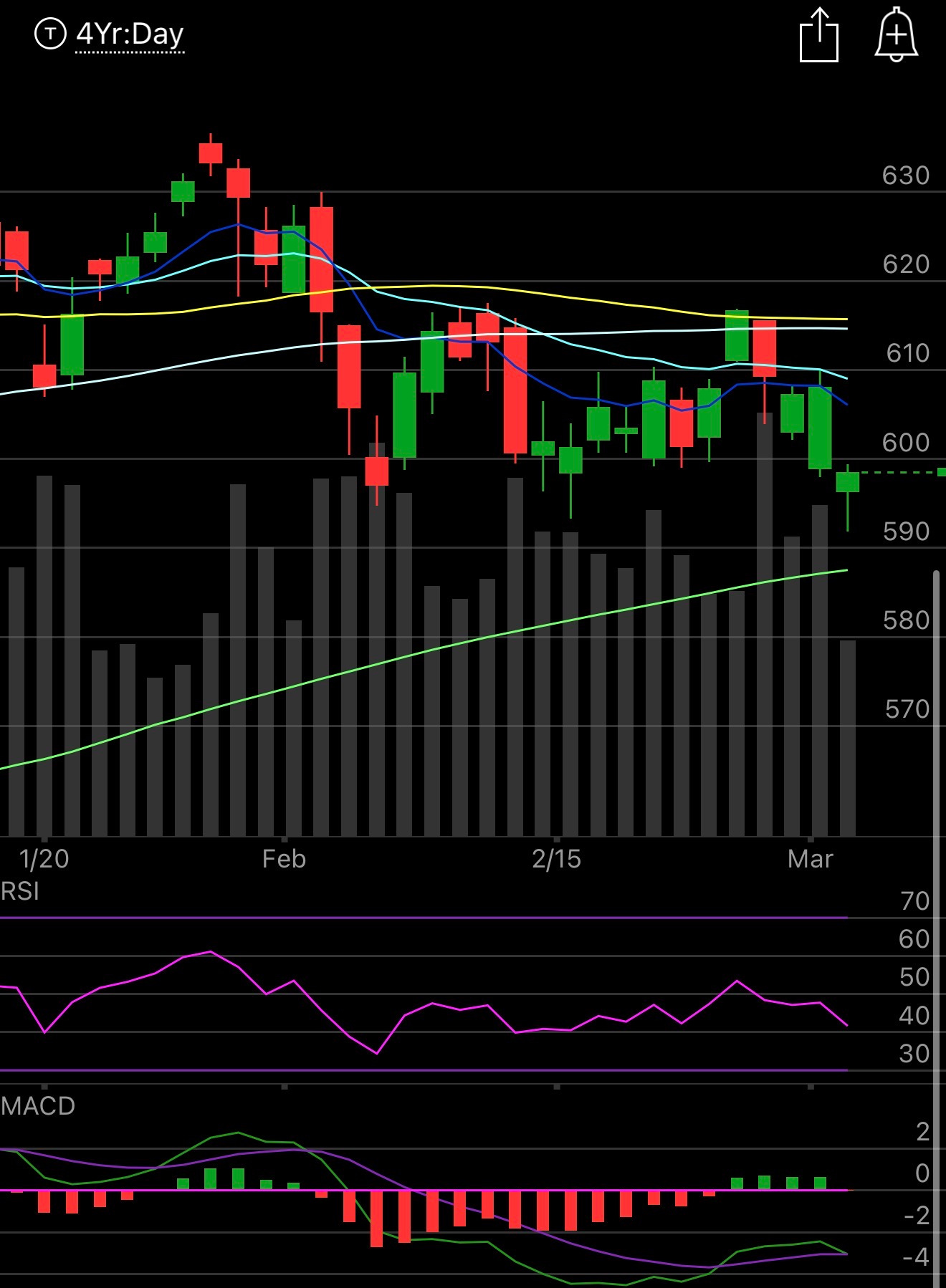 The QQQ got very close to the 200 day this morning and was less than 1% away from a touch as it broke down from this bear flag we’ve been talking about for the last week.