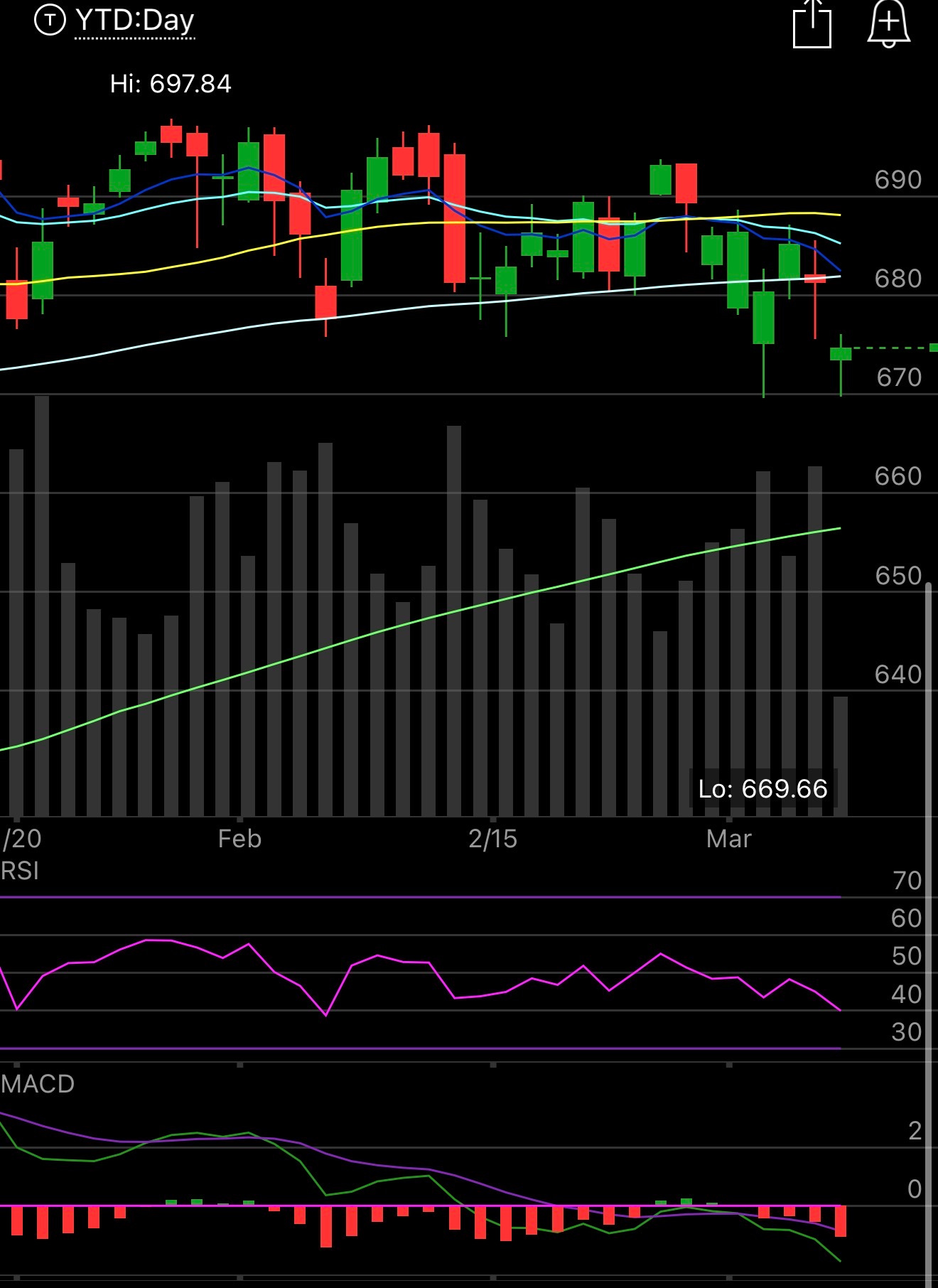 The SPY gapped down to its lowest point in months today but once again held that 670 level so far. We had a huge miss on jobs and we had Trump saying he wasn’t going to quit the war until Iran surrenders and traders did not like that. Oil is also relentless rising 10% today to nearly $90/barrel which is going to cause all sorts of second order effects if it persists and its hard to see how it doesn’t at this point. The VIX is also on fire rising over 28 before cooling off to 26 right now so add it all up and you have uncertainty galore heading into the weekend. Short term it does not look good at all.