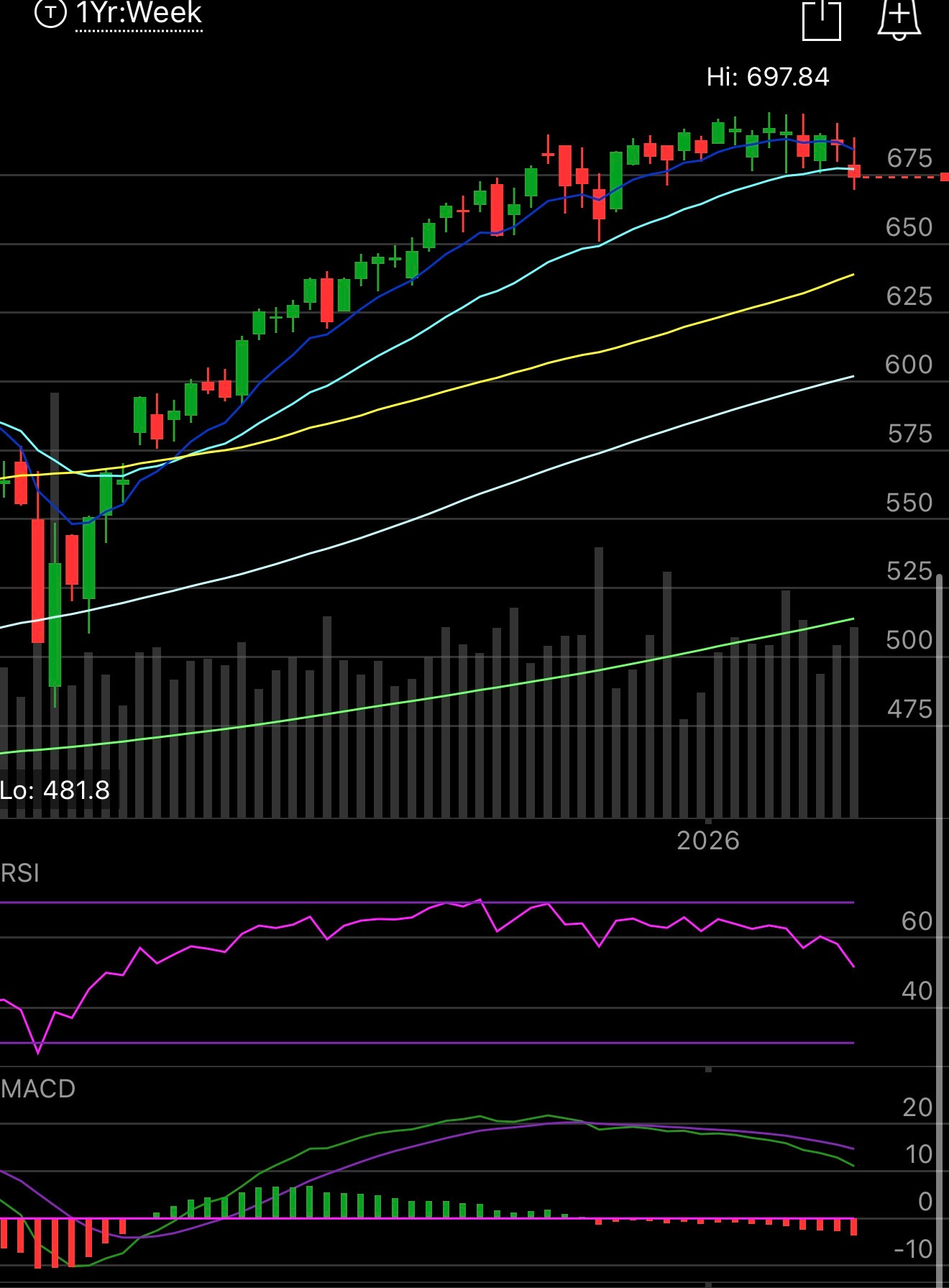 The weekly chart is the one that concerns me most with the SPY potential closing under the 21 week for the first time since May if it doesn’t reclaim 677.22 by the close. This would be a major change of trend for the overall market.