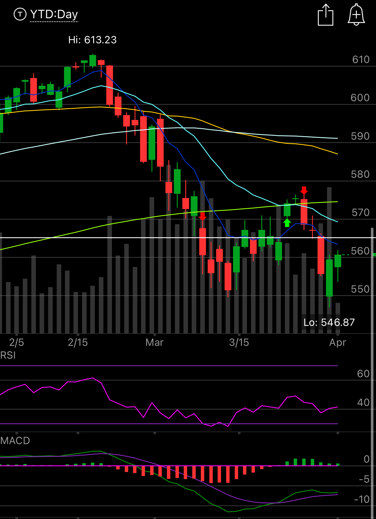 Did we double bottom yesterday? For now it appears the answer is yes. Tomorrow is tariff day and while we do remain well below the key moving averages I did put some longs on today but I will have a tight stop with a close below yesterday lows. That’s all you can do if you’re trying to pick a bottom, you look for something like this double bottom and go long with the notion that you know where you’re cutting your losses, for me it is below that 546.87 level. Could we be past the worst? It’s possible, its possible this tariff stuff escalates into us launching nukes at Europe too, who knows whats coming, I’m just looking at the chart and that 550 level has held twice so I’m taking a shot. Take a look around the market today, the risk on stuff is running: ARKK, Bitcoin, Tesla, and DJT. That isn’t really what happens when markets are in panic. So keep an open mind that price action is truth and all the headlines are just noise.