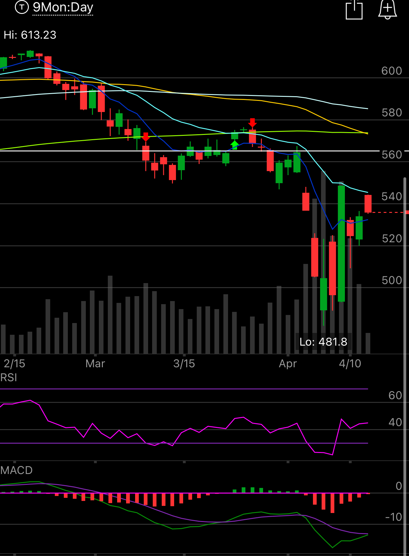 From a technical standpoint, we keep rejecting the 21 ema, we almost touched it today and reversed lower, until we break above it, this is still a downtrend and has been for a while. You can target put sales at those recent lows of 481.80 and close them for a loss on a break below that. Let’s see where we are after the second Trump speech of the day because we just sold off on the first one.