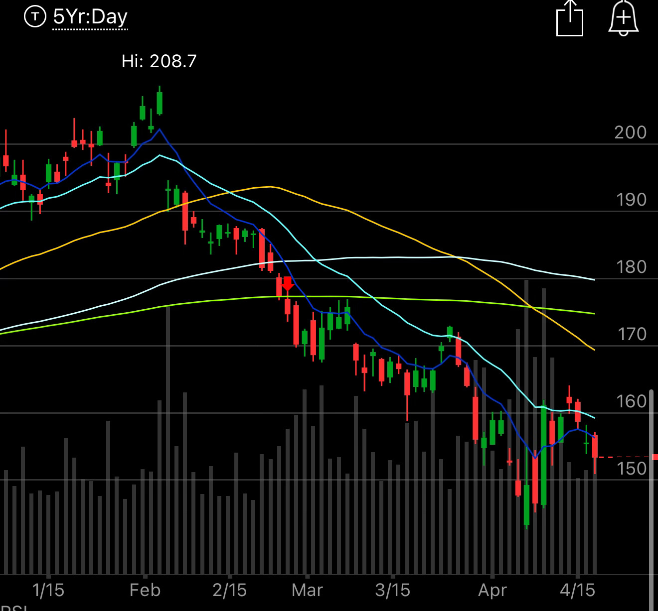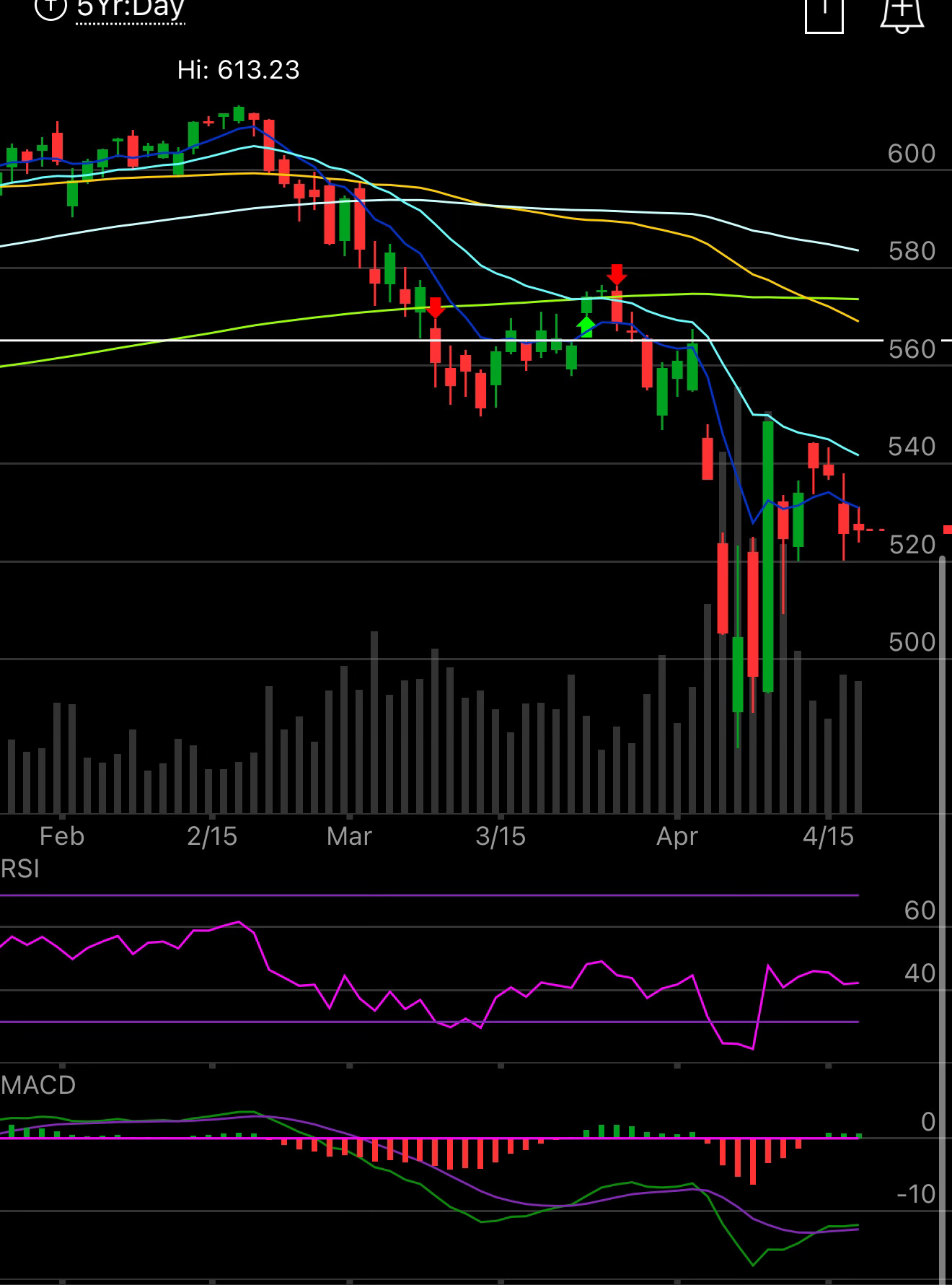 Let’s look at some of these mega cap charts and you can see what I mean. Here is MSFT below, this has seen multiple breaks below the 200 day(green line) since last summer it was consistently weak and then in late January it broke below the 21 ema on that heavy volume gap down and it has been a disaster since, reclaiming the 21 ema twice short term and instantly reversing back below it. This is where you want to wait and see a name reclaim some of the bigger moving averages first like the 50,100,200 which MSFT never did. There is nothing else to say here, this is a great company if you buy it here and close your eyes, I’m sure you’re thrilled a couple years out, but in the short term it won’t be pretty or easy as every pop continue to be sold. That simple rule of being long over the 21 ema with a stop on a close below it would save everyone fortunes but yes along the way you would take a lot of small losses going long and being stopped out especially in this recent tape.
