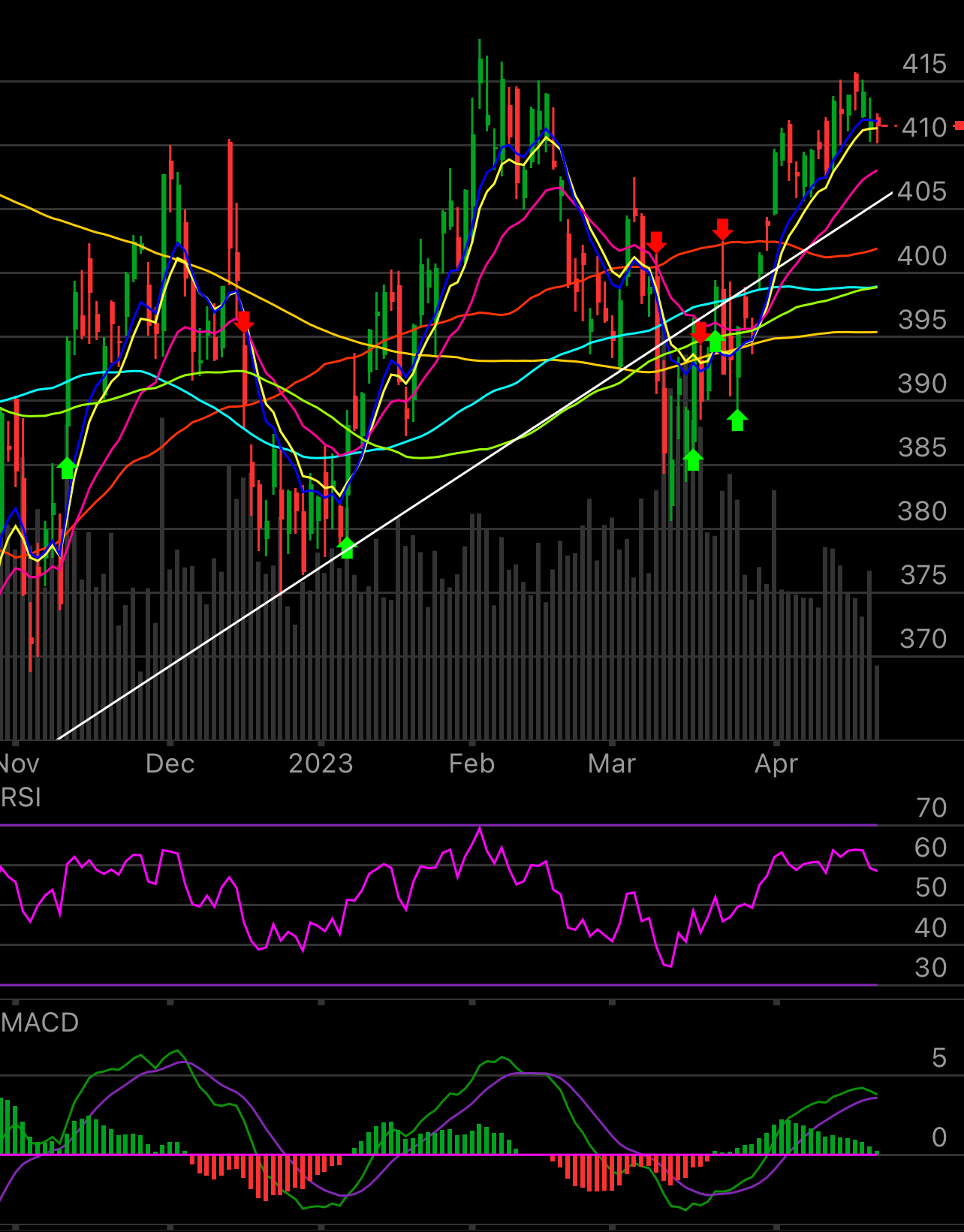 If you scroll back through a chart of the SPY for years, you will notice that the MACD rollover the overwhelming majority of the time comes with a period of weakness, here is the last 2 times we had a MACD rollover since the October uptrend began. Notice how in December and February the MACD flipped negative and equities followed lower? We are on the cusp of another, now could tech earnings next week negate it? Sure, but I rarely put short positions on and the risk/reward has to be favorable like it is here. We are 1.5% away from a breakdown in the market, the MACD is going lower, and the stars are aligning for me to take a swing at a short.