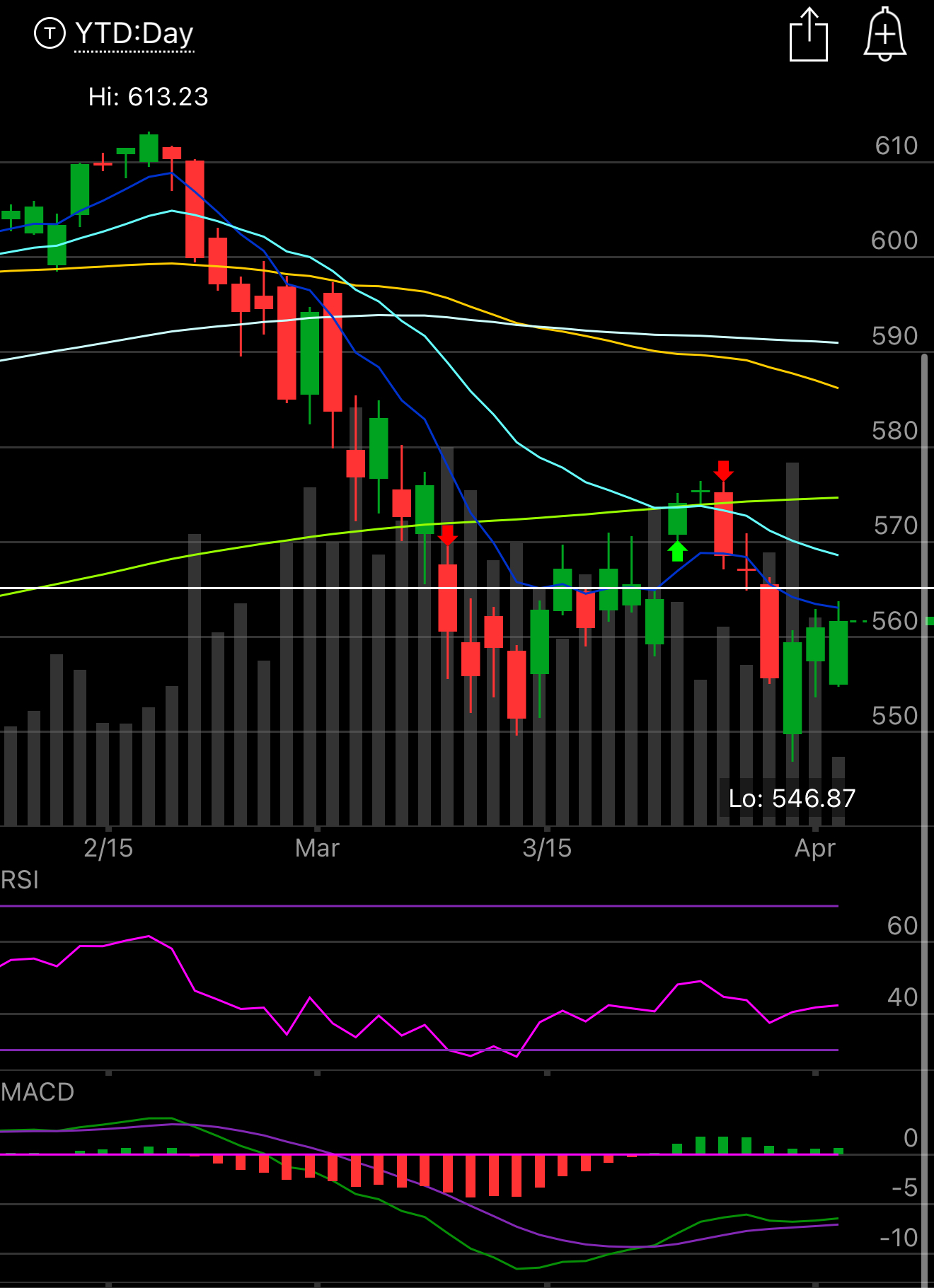 The SPY still can’t get over that 8 ema which is a red flag although we did breakthrough today. I think the market is in wait and see mode until the tariff announcements this afternoon once the market closes. I still stand by yesterday’s comment that the lows are in unless we close below that 550 level so the risk/reward of going long is really about 2% here which is all you can do as a trader is put on longs and stop where new lows are made which is why I put on all those longs yesterday. My thinking is this afternoon he announces tariffs and they’re less bad than expected and we move forward, if I’m wrong, 2% lower I would close out everything. Let’s see what comes of all this today, until it passes there really isn’t much to pontificate about.