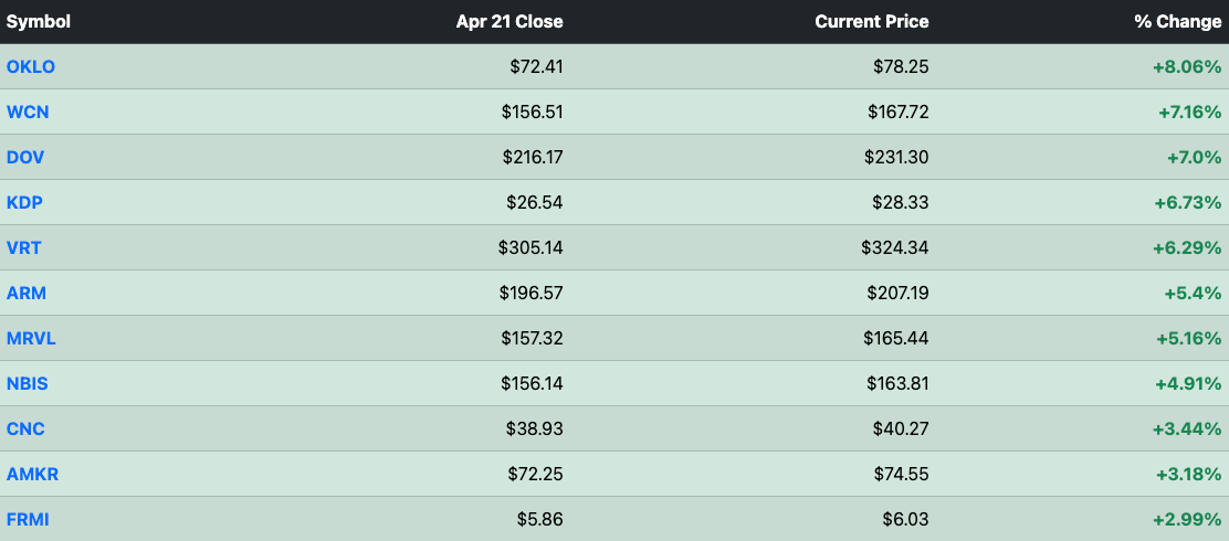 Top Gainers From Yesterdays Flow