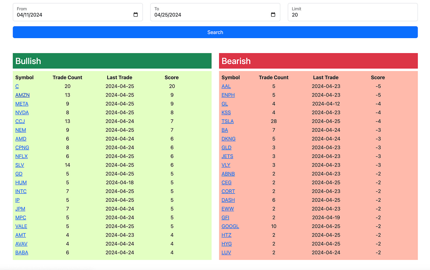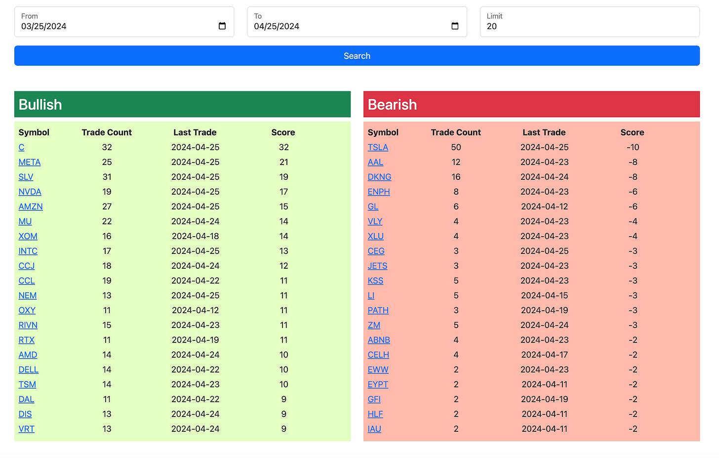 Here is today’s link to the database, as always it expires tomorrow morning and I will have the rest of today’s action posted by the afternoon. For those of you that are new, you can search ticker by ticker for all the flow I’ve posted, under the rankings you can click and see all the action within a name. The tables here are just for those who want to read through it quickly.