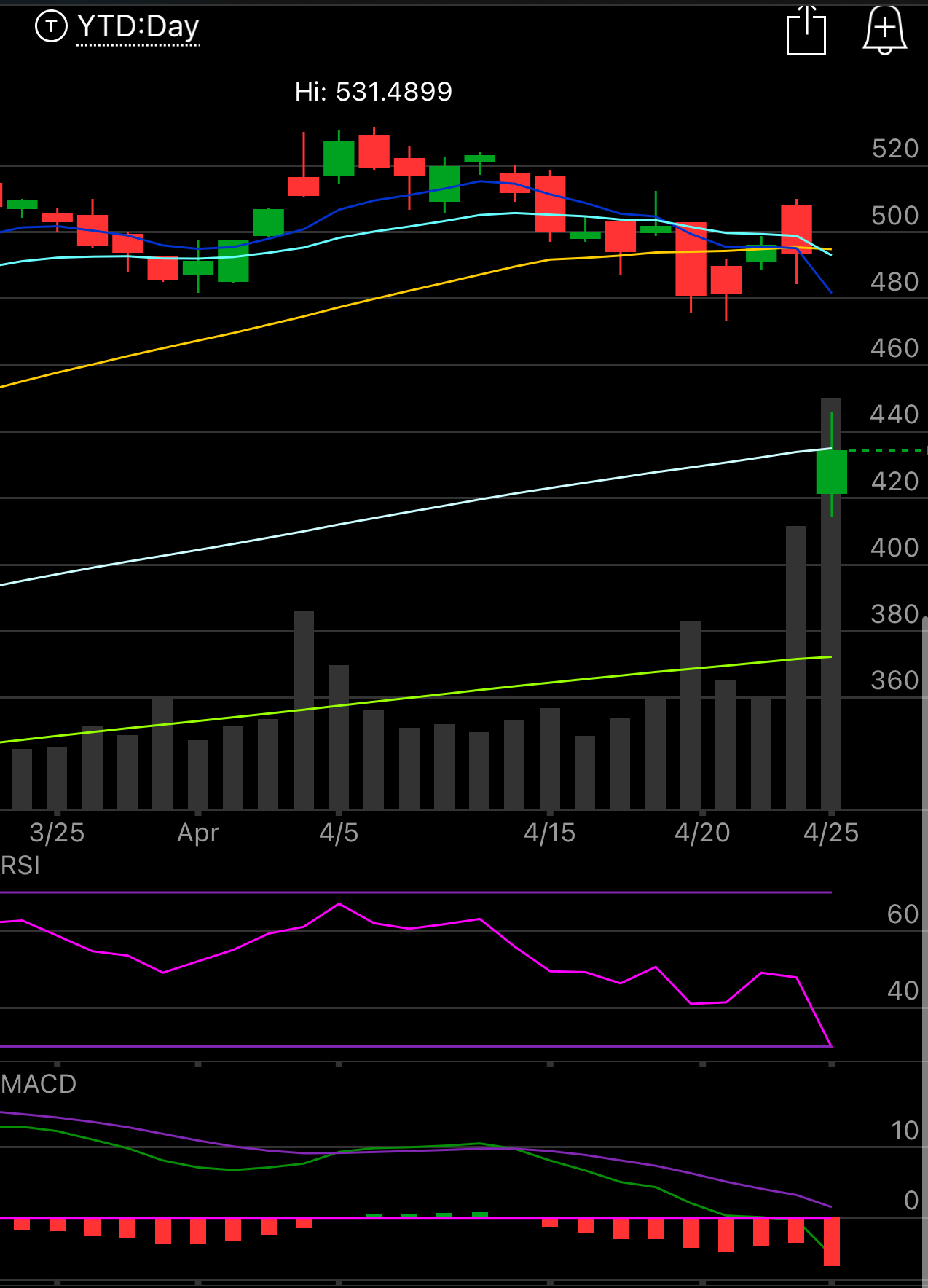 Today was about alot more than META missing earnings. The GDP that came is pretty much showing stagflation. This is the worst possible outcome for the fed. It was the lowest GDP print in a couple years and PCE was alot higher than expected. Now we are pricing in zero rate cuts for 2024, I’ve mentioned that possibility a few times recently and now it seems like a reality, another day of adjusting those DCF at funds everywhere and the ensuing sell off makes more sense.. Today we have GOOG and MSFT reporting, unless they pull some sort of miracle and save the market, it does indeed appear like this downtrend is playing out for a little bit longer.