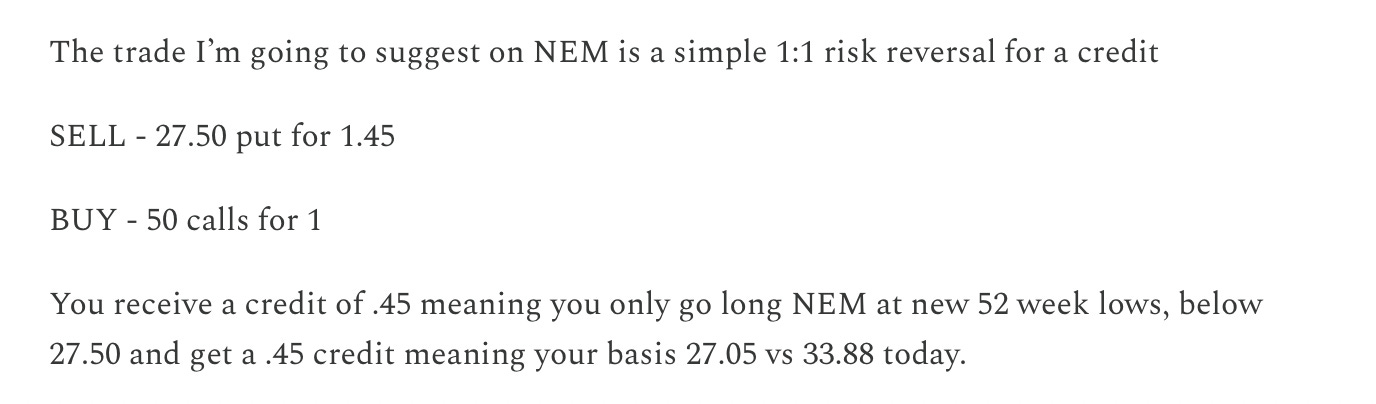 NEM crushed earnings today up 11% right now, I wrote that up as a weekend best idea back on 3/16 here