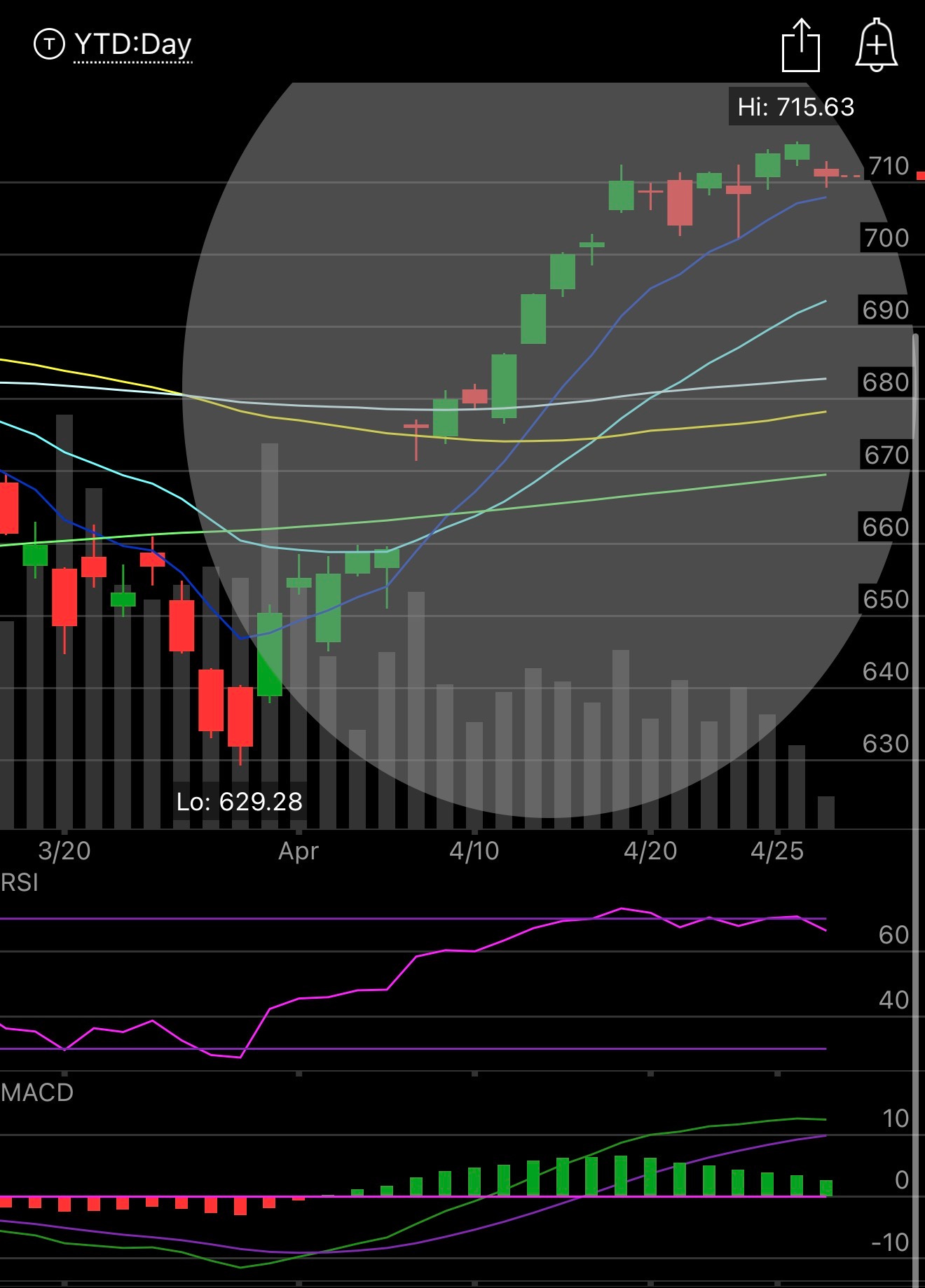 The SPY gapped down on the overnight report from the Wall St Journal about OpenAI missing their revenue estimates and possibly being unable to fulfill their obligations. Big names like NVDA and ORCL got hit hard. I think its all nonsense, and we needed an excuse to cool off. Look at what I highlighted below, if close over the 8 ema(dark blue) today, that is 20 straight sessions on the SPY. This has been an incredible run. We are extended and have needed to cool off but it all still hinges on tomorrow with FOMC and then 30% of the market reporting. If we get some warnings or guide downs tomorrow, then I will worry, until then this is a routine pullback to the 8 ema. We’ve had a really frothy month, semis are up 40%, countless companies that are relatively junk are up 50-100% or more in a few weeks. It’s ok if some of these names have sharp corrections but this is still a very clearly defined uptrend on the overall market with a 21 ema sloping up at 693.50 right now.
