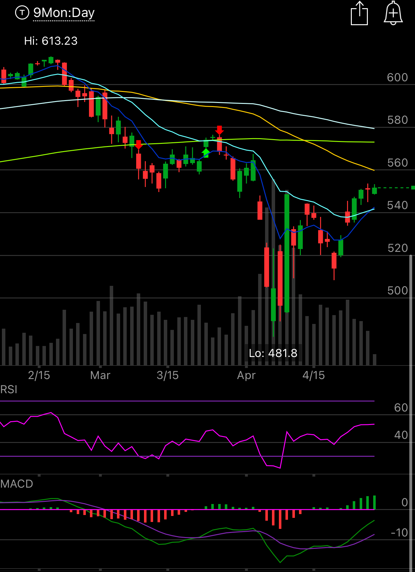 The SPY continues the slow grind up after breaking the downtrend last week, nothing much to report today so we all wait for the big ones tomorrow and thursday starting with MSFT and META. The overhead resistance at the 50 day still remains in place around 560. We’re finally getting that 8/21 ema bullish crossover now and things appear to be mostly alright for now. I think you can sell puts at that open gap below at 525 if you’re wanting to get long but be prudent.