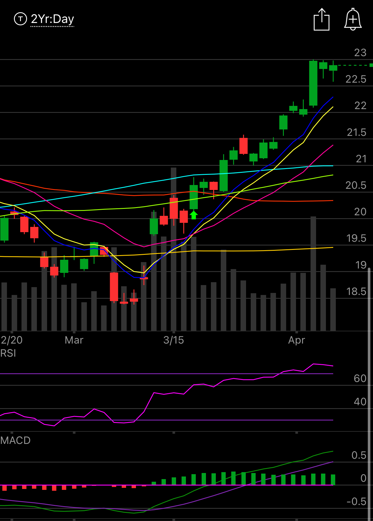 The daily chart is a little extended so a pullback wouldn’t be shocking. Look where the RSI is, it is off the charts, but the name seemingly can’t see a red candle anymore with 11 green ones in the last 12 sessions. When a name gets extended like this, but also breaking out in the process, the only way to play it is to sell puts lower and wait for the RSI to cool off. See the gaps below, I want to go below those somewhere around $18.60 as a worst case scenario.