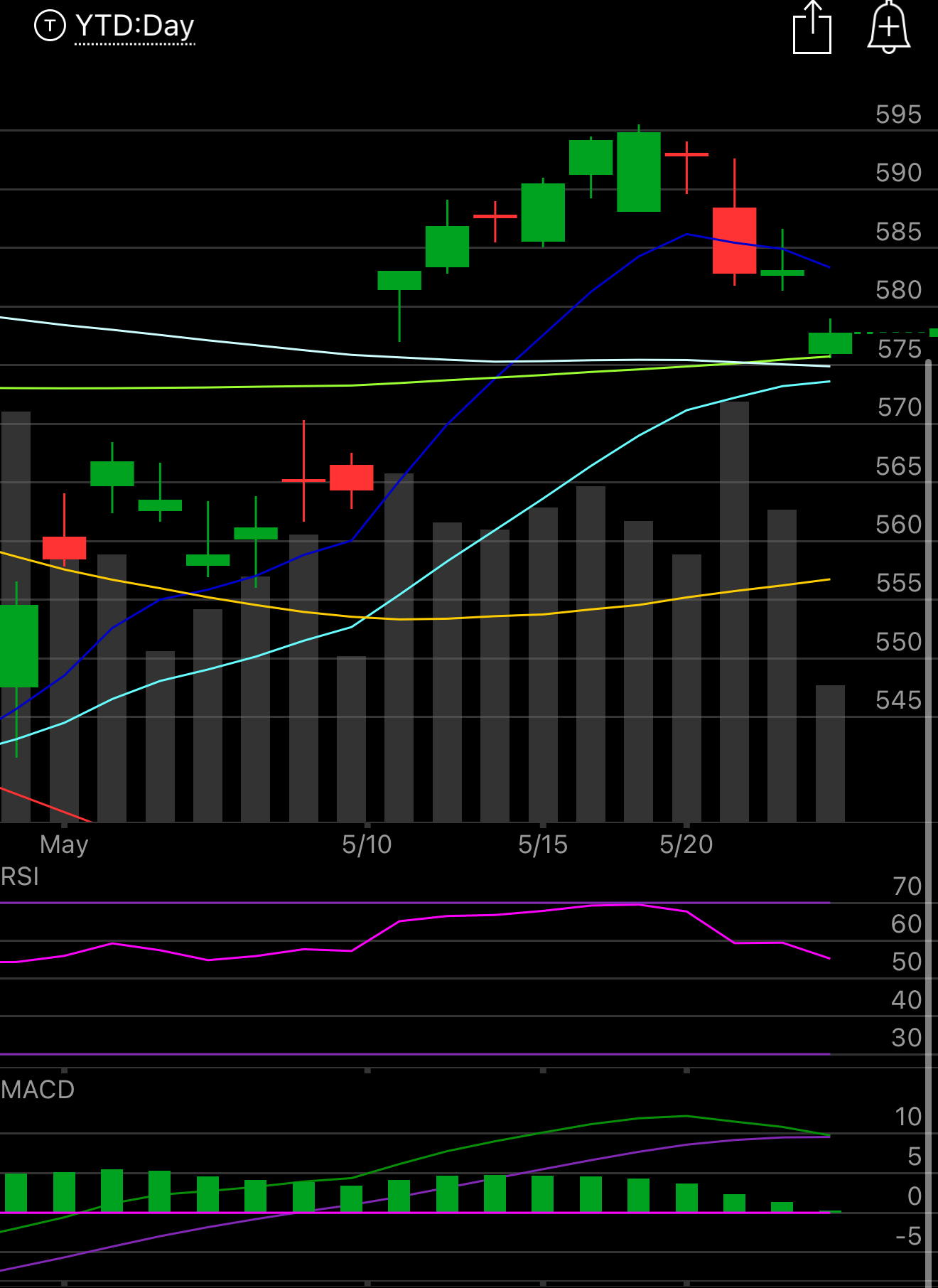 I’m heading out a little early today we are going on a trip for the long weekend so sending this out early. The move in the SPY shouldn’t shock anyone here, I discussed this ad nauseam the last 2 sessions, this was just a textbook break of the 8 ema, followed by a retest, and now we’ve moved down to that 200 day and the cluster of support there at 575. The technicals were right and we bounced off the 200 day so far. The macd is rolling over so we have to see what comes next but the bond market was getting ugly, we hit near 2 decade highs yesterday and Trump really didn’t have a choice but to ramp the trade war today because it got yields down. If you’ve learned anything from Trump in the last month it is that he basically does whatever the market needs him to do. When we were at lows he gave us multiple pauses and tweets to pump us and now with yields causing him issues, he barked at Apple this morning and issued 50% tariffs on Europe starting next week and yields fell. Let’s see what happens next because if we hold this 575 level we are ok. Like I said in yesterday’s recap, the market sends you warning signs, 2 closes below the 8 ema were just that, what was coming next didn’t really matter but bigger players were not interested and that’s why we kept closing so weak. I do think we may announce a trade deal with Japan over this long weekend just based on how X, US Steel is acting today up 7%. So we may get some bullish catalyst in that regard.