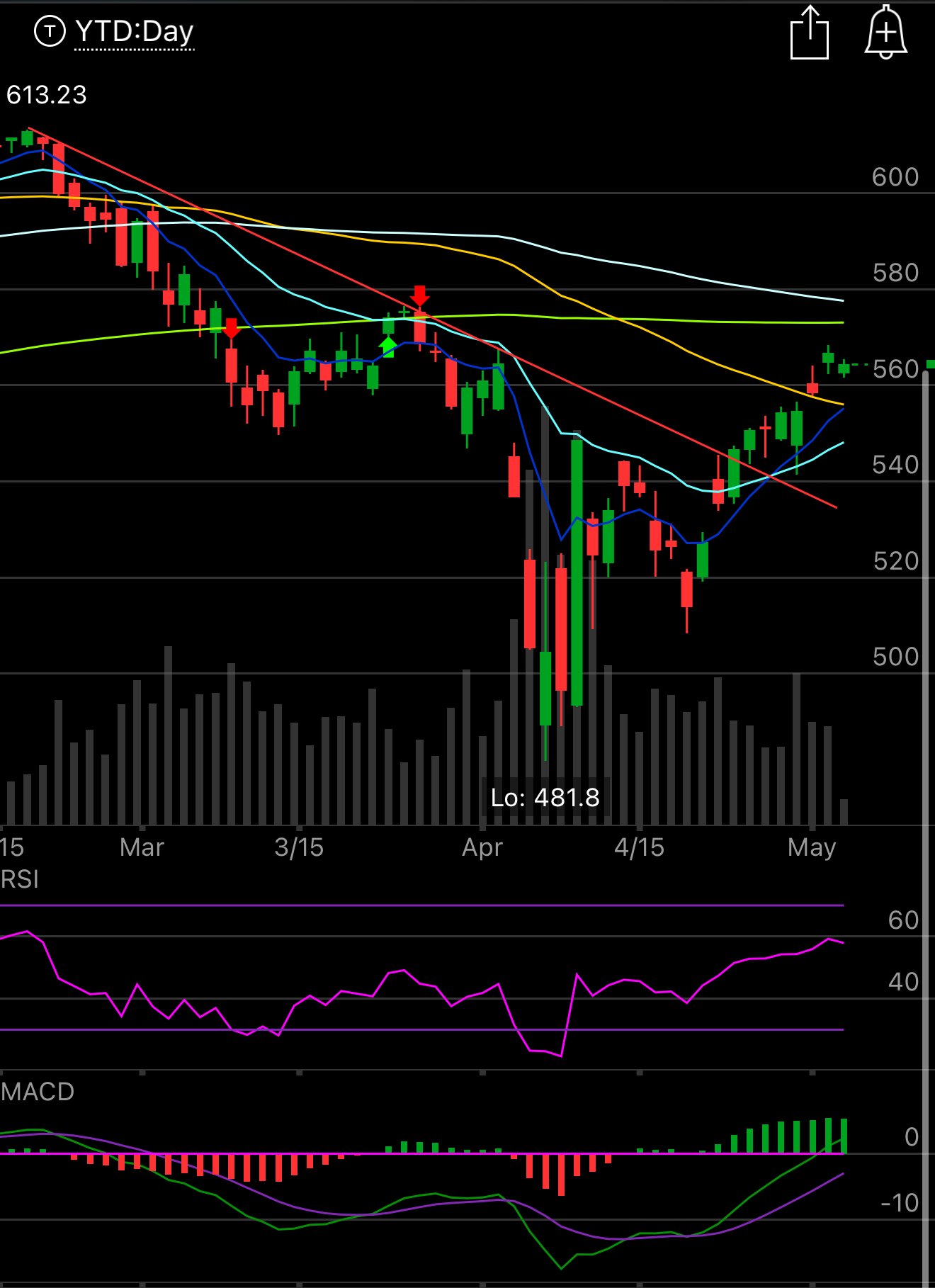 The SPY remains below the 200 day and today just seems like a rest day. We got more uncertainty over the weekend after the hour long Trump interview on Meet The Press. It appears that his initial comments that the 145% tariffs were off on China were not true and from his rhetoric yesterday, for the moment those are still on. Remember now this whole rally the last few weeks was because he initially said “we’re not at 145% but we’re not at zero” and now he appears to be changing his tune and the market is taking a step back. This back and forth is causing alot of confusion and the market hates the lack of clarity. So be patient and let’s see what really comes of it all, the megacaps did not guide to anything scary last week, a pullback to the 8 ema at 555.26 right now wouldn’t be too terrible. This was always going to be a big spot with the 200 day at 573 right now, either we push through that or we reject and go lower it is as simple as that. We also got news today that a trade deal with Japan is not close, that was surprising because many thought they would be the first done deal which shows you how far away we are from deals with everyone.