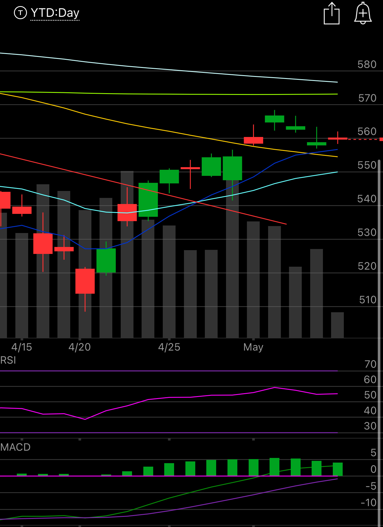Nothing of note so far today, the SPY is just hanging around over the 8 ema waiting for this afternoon and FOMC followed by Powell speaking. We have to see what Powell does and if it makes the market happy. I don’t think he would cut rates today based on what he’s said the last few times he’s spoken, but he could surprise, there is pressure building on him to do so. In terms of levels to watch, on a happy market reaction, we could break that 200 day above at 573.15, if not, we could break down and the 550 level is where I’d look for us to hold right at the 21 day, if that doesn’t hold we have alot of room lower to go. As always on days like this you’re probably going to get a big move so if you’re concerned about a big sell off just lighten up into it.