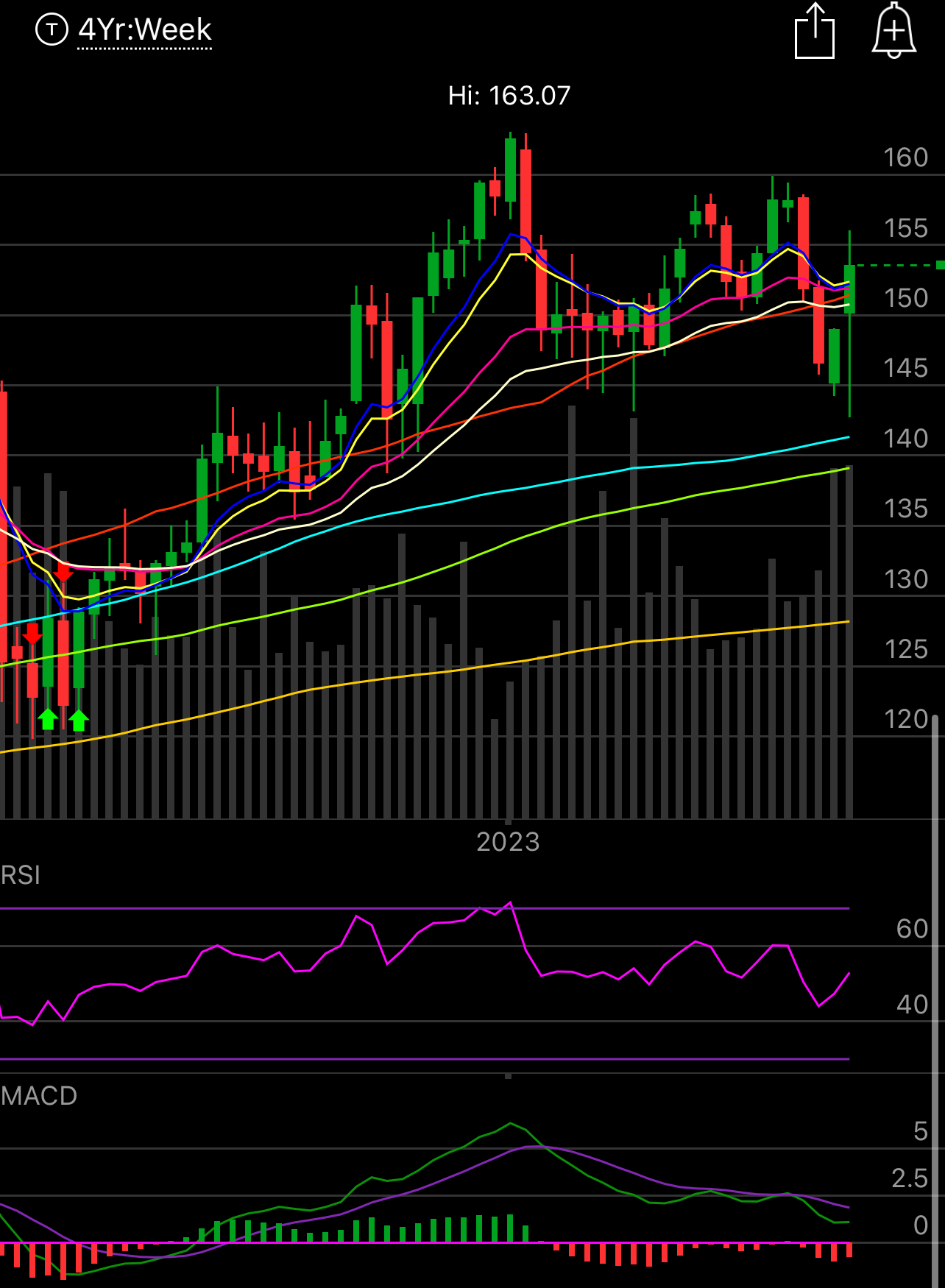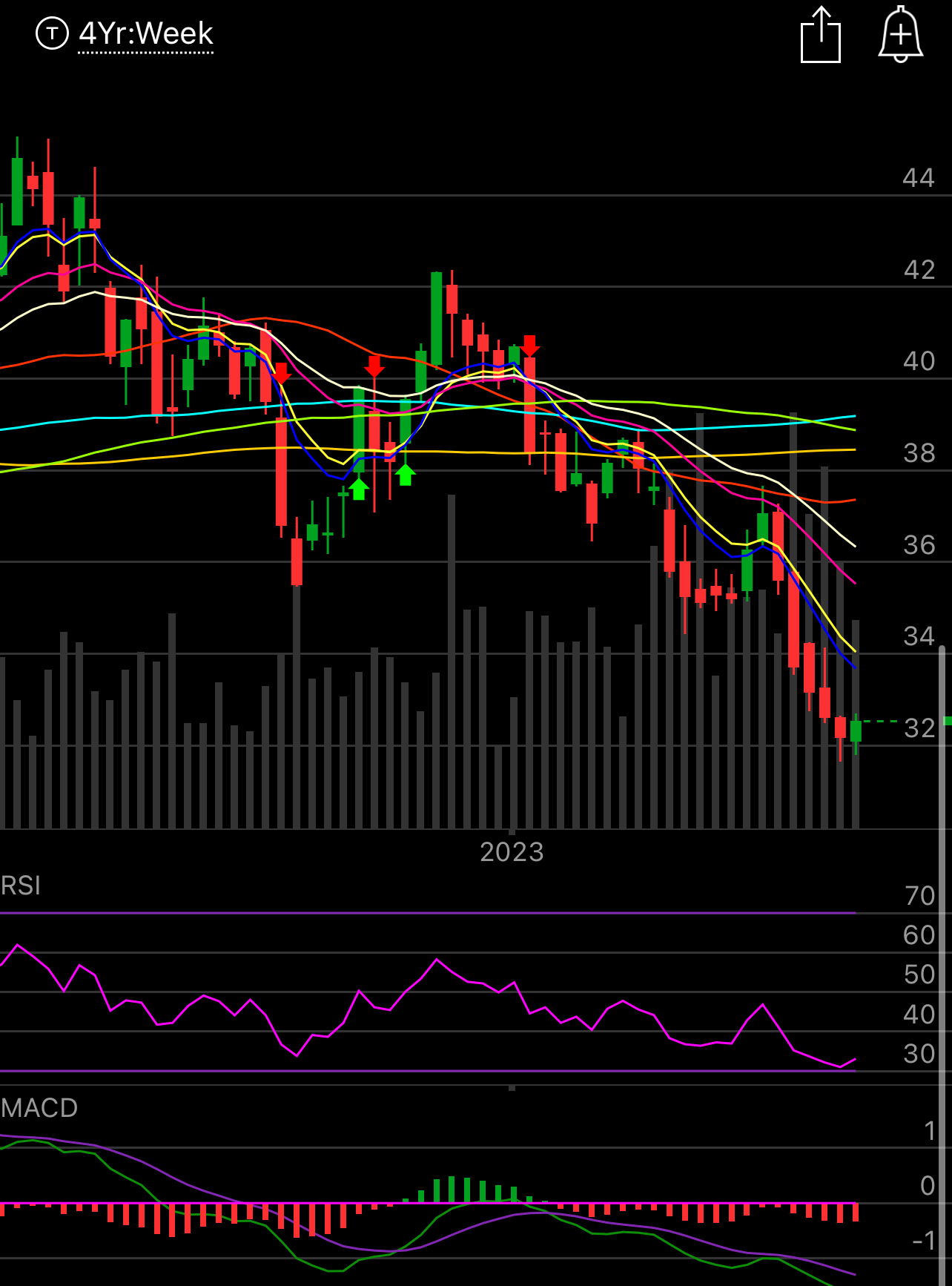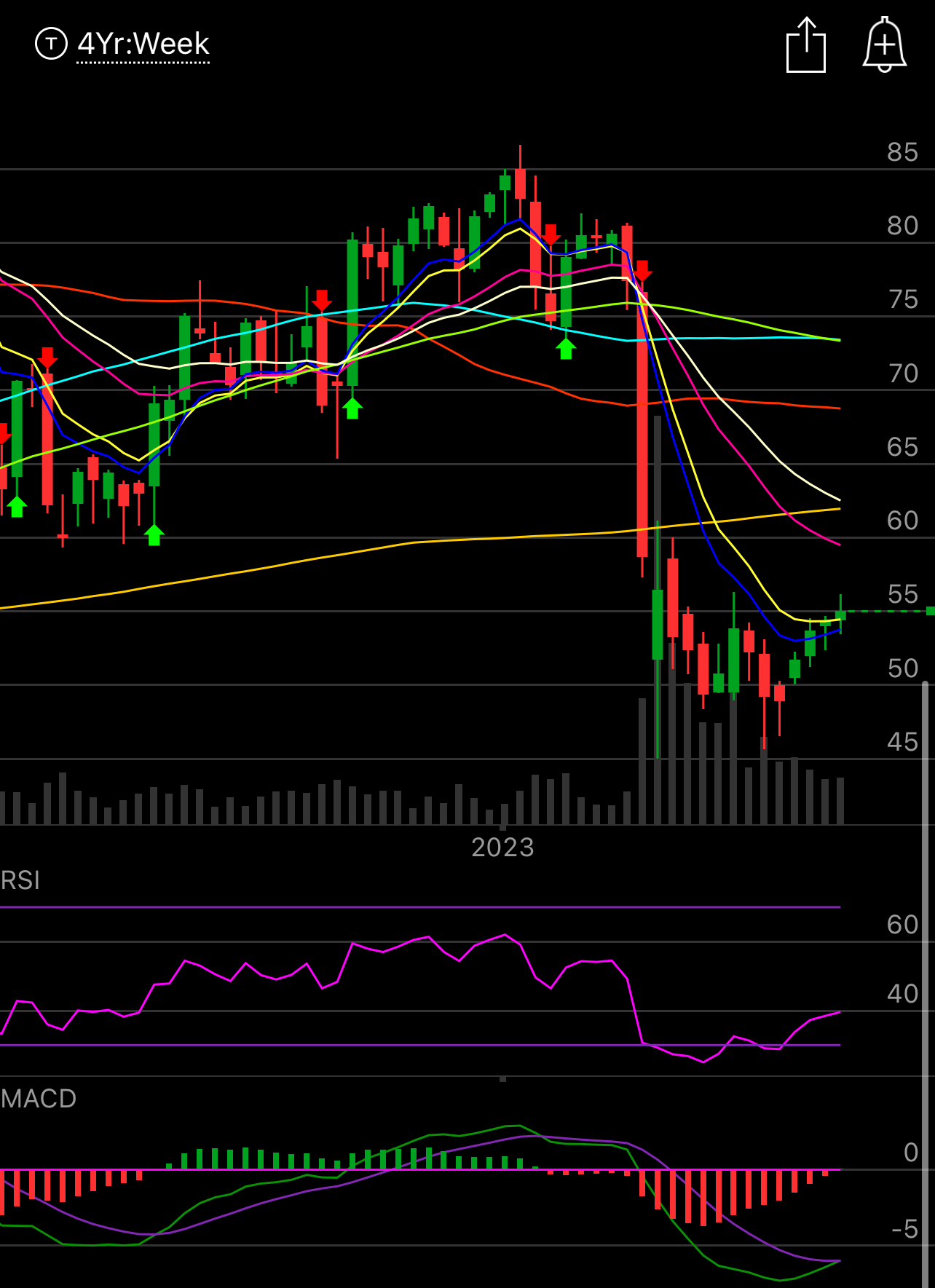 Just remember, you have access to scanners too in your brokerage. Use them. Look for various things. Short term I like to see names over the 8 or 10 ema. Longer term I like to see a bullish engulfing candle on a longer timeframe showing sellers were met with buying. I like to see use the 200 week as a major do or die spot with a tight stop. Over time you develop your own things you look for but at the end of the day, you can buy a good chart, long before you can buy a good balance sheet, because the chart is a reflection of the actual action within the stock. Take BTI, this is a fin twit darling, the P/E ratio is 7 or 8 and it has a 9% dividend and guess what? Nobody cares. Look at the chart below, does that look like a chart full of buyers? It doesn’t mean the company is junk, it’s a very good company, cigarettes have been a great business forever, it just means you’re catching a falling knife buying a name below every moving average that can’t seem to form a bottom. When it bottoms and turns around, go for it.