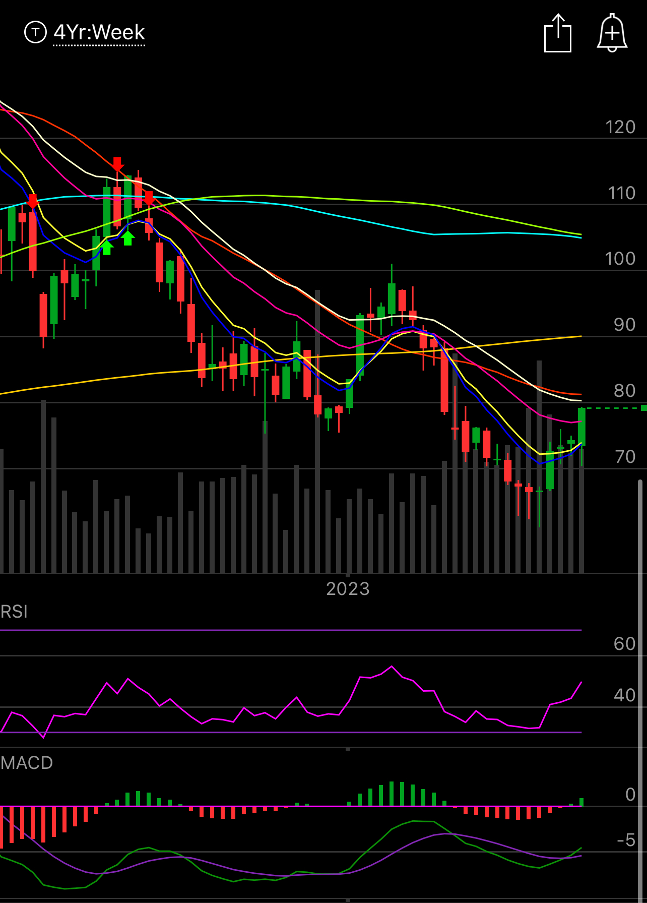 I have some strong chart setups I want to share but before I do, I want to go deeper into what charts are what I mean when I say “ a strong chart setup” for those that still don’t get the importance or those who are new here. A chart is simply a map of what is being bought or sold, and each little candle on the chart is telling you a story within a story. Why is this significant? Well, you don’t want to buy a stock that is being sold by bigger players, right? So when these people on twitter tell you they’re a “long term investor” and don’t care about charts, they’re just telling you that they’re ignorant and lazy. My goal is to outperform, not perform inline or worse underperform. You can’t outperform if you waste your time being dense about being long a weak stock. There is a classic example of this going on right now, a stock that is “cheap” and finwit LOVES it.