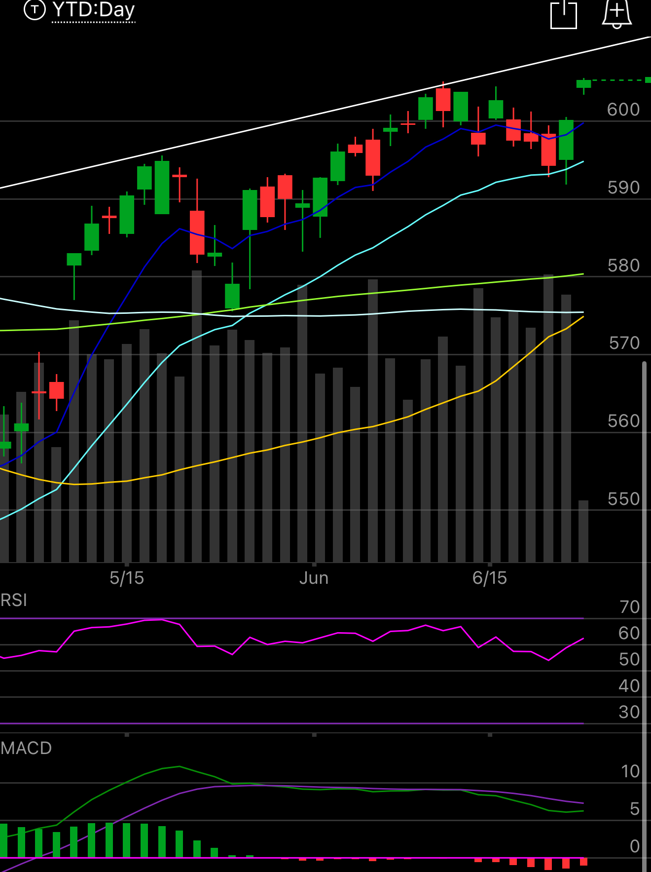 The SPY made a huge move overnight on a ceasefire agreement between Israel and Iran. Will this deal sustain, I don’t know, but for now the market is loving it and oil is plunging into the abyss. The SPY had 2 tests of the 21 ema in back to back sessions and held right where it was supposed to without a single close below there. Oddly enough we’re right back to literally where we were on thursday when I issued that first warning about the market facing some headwinds from a potential war in the middle east so all in all we’ve done nothing in that timeframe. Now you have some clarity if you want to put some tech back on but let’s be honest here, this has been a pretty bad year for the mag 7 with only MSFT,META, and NVDA outperforming the other 4 are down on the year with Apple and Tesla both down big around 20% really underperforming the market. The chart below is just more validation for those who always ask when does market weakness begin, it always begins below the 21 ema and we saved it for the time being so for now you can keep pressing your longs. Just be mindful of that line and take a break below it and you will always be safe from pain.