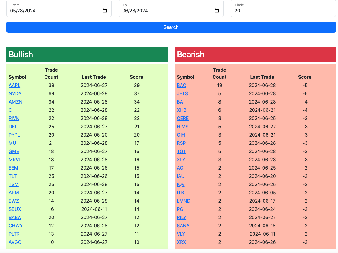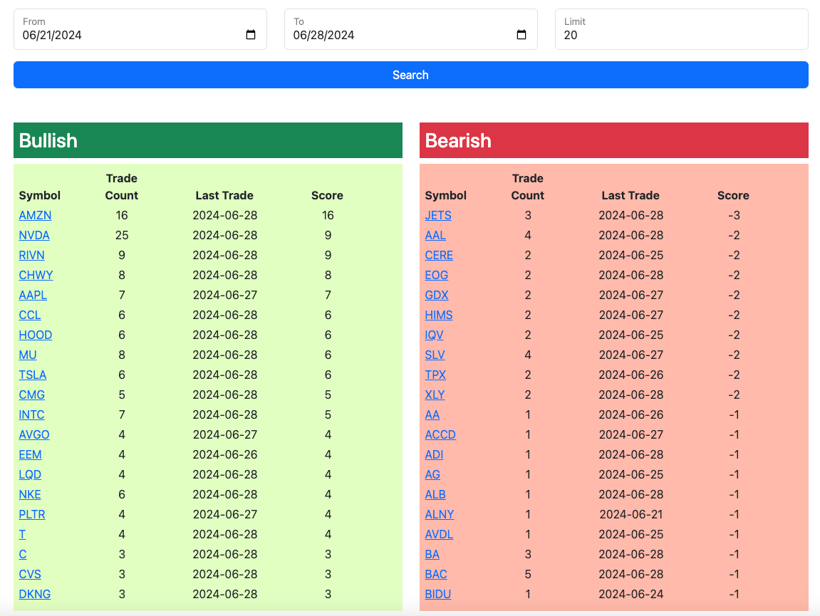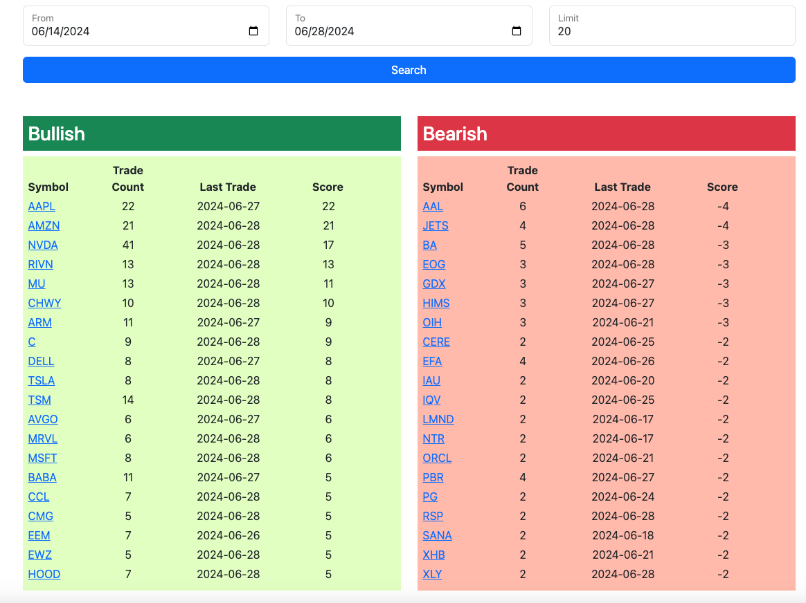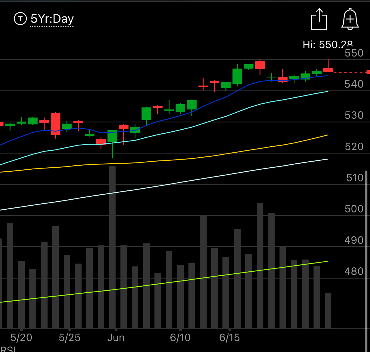 Slow session today, really slow week in terms of option volumes. It is summer, next week is the 4th of July holiday week and we’re just in that period 2 weeks before earnings begins where nobody is really doing much. The presidential debate passed last night with nothing material, PCE was fine today, overall we’re wrapping up another great quarter right now. Tonight I will look over the quarterly candles, those are most important when looking for longer term moves. Today’s candle on the SPY isn’t the best so far, but there is still time. It’s a weird selloff because the VIX isn’t really heating up. So probably nothing just quarter end games, market makers moving things where they need to.