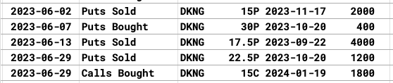 DKNG has seen mostly bullish action this month with 1200 puts sold at 22.5 today and 1800 calls bought at $15 for January. The stock is up 4% today to $26 and those large put sellers from June 2nd and June 13th is sitting nicely now. These small cap names have been so strong recently.