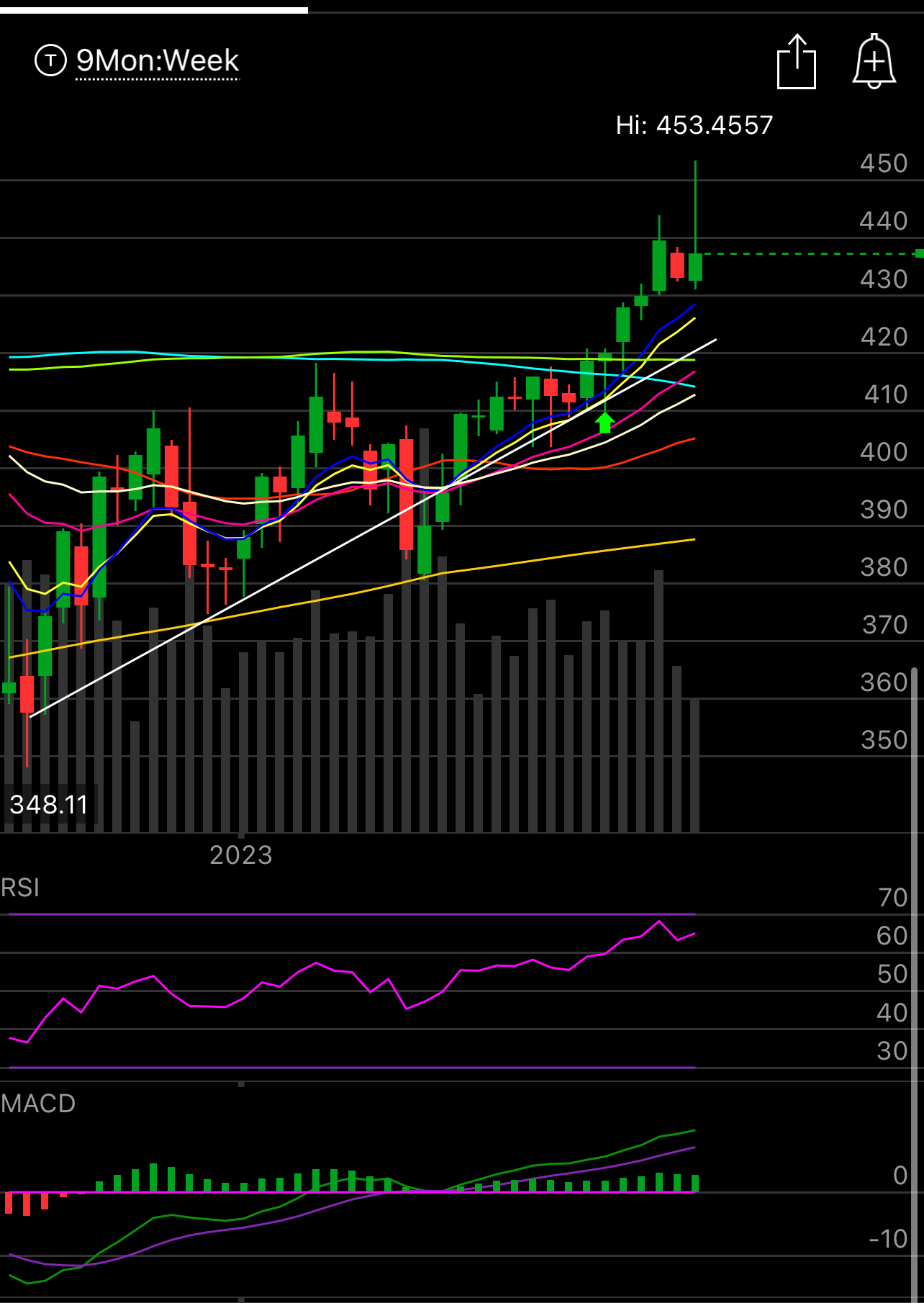 The SPY remains indestructible as it reclaimed the 8 ema recently and continues to trend above it. Apple continues leading the way as it seemingly cannot go down on anything, even a year over year revenue decline this past quarter. As the markets largest component the strength it displays is incredible.