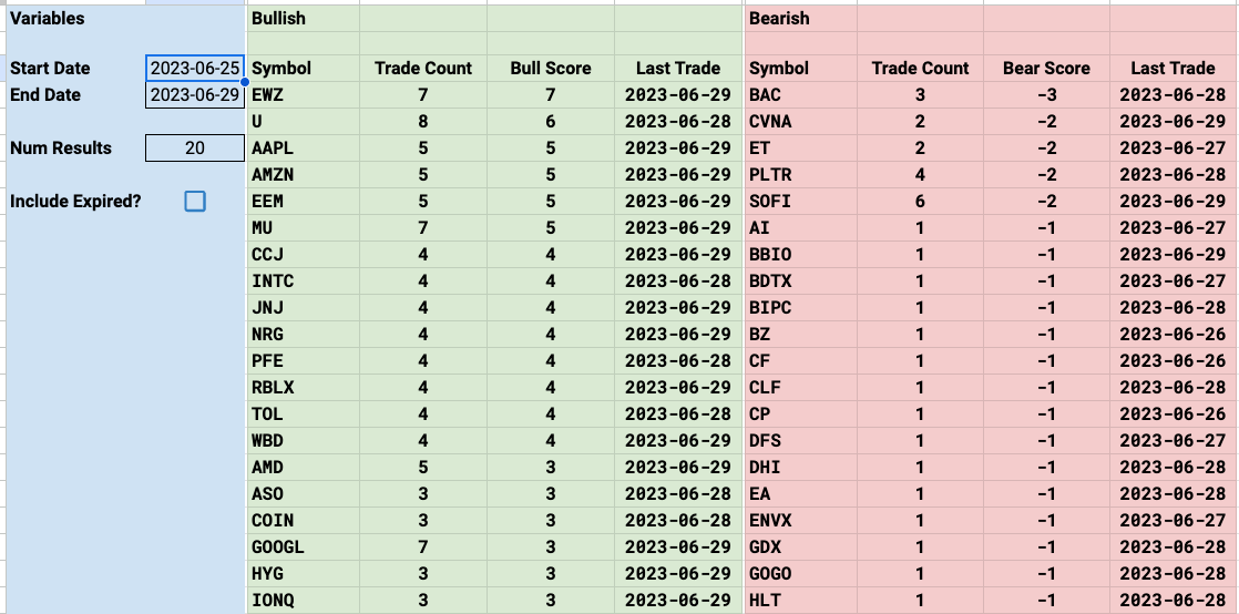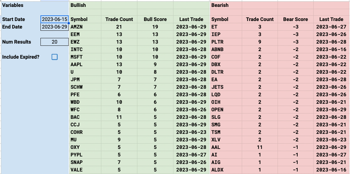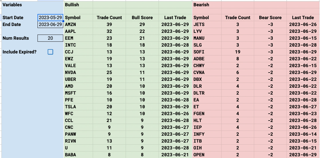 Of note though are 3 trades this week that came through these tables. I always tell you to pay attention to the really unusual names because those tend to be ones with way more potential than the large caps.