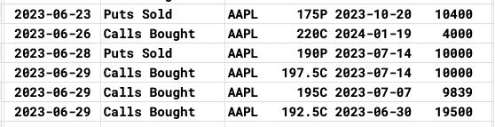 AAPL had 3 large call buys today. 1 was a large buy for tomorrow with 192.5 calls almost 20,000x. Then there were huge buys for next week and the week after 10,000x. Apple has been nonstop and has one of the best charts you will ever see. These were the odd lots I saw this week