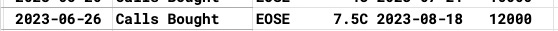 Tuesday I noted 12,000 EOSE calls bought at 7.5 in August and today it was up 9%!