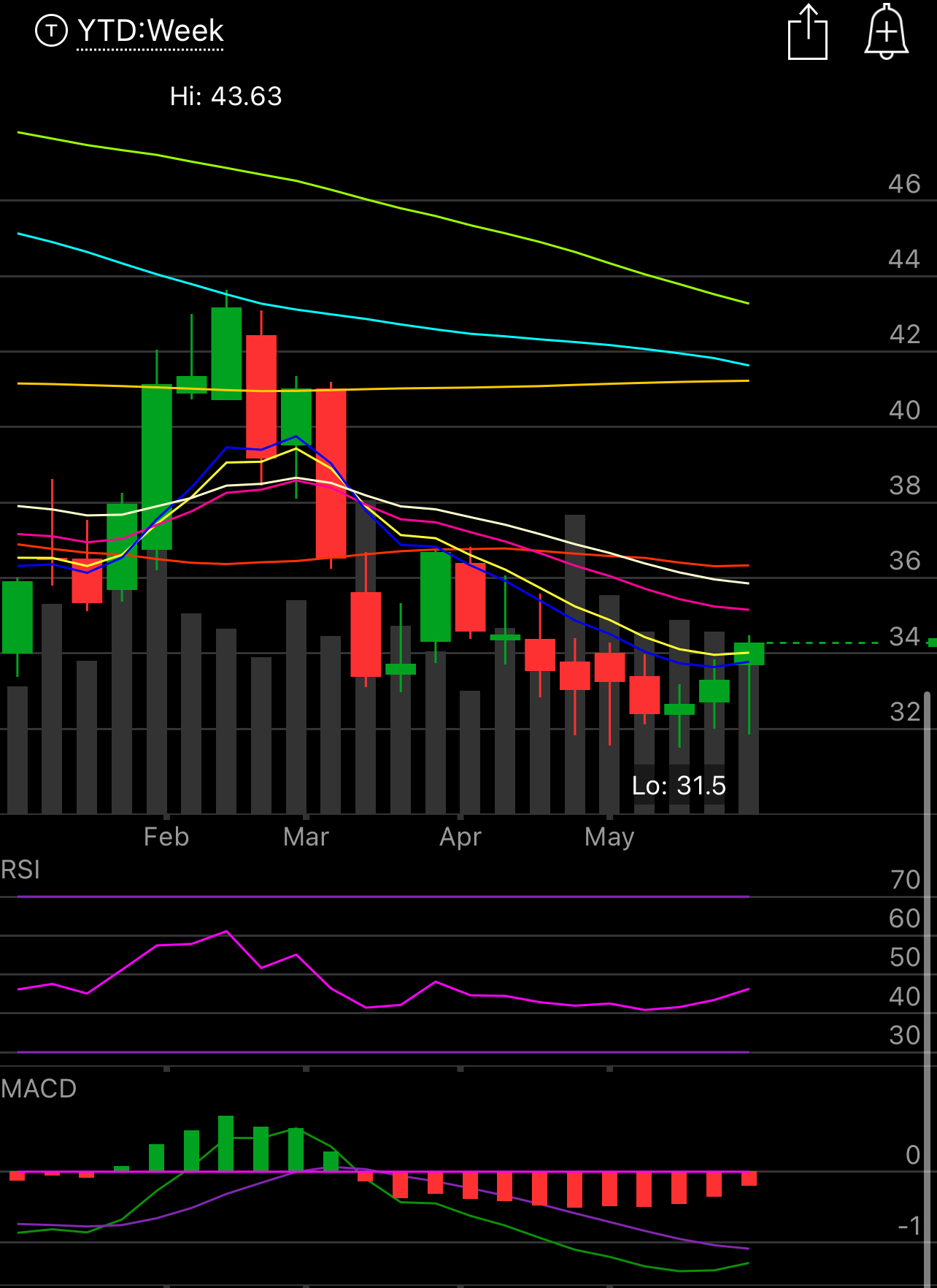 These are all the open options in my database, lots of puts sold targeting the low 30’s open still. A few weeks back there was a large 10,000 block of puts sold at 29 expiring in August. Those seem like nice sells to me if one was interested in the name. There was a sizable block of 1000 puts sold at 37 in the money yesterday that was interesting to me, they only do that when they see considerable upside. There is also heavy action in August 41 calls. Bottom line, I like the idea of selling puts at 29 or 30 a few months out on a quality name that seems to be turning around.