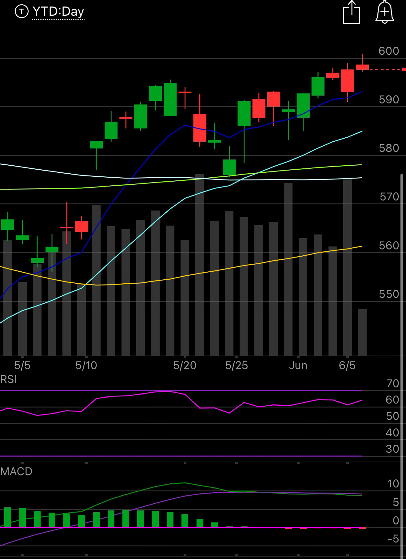 The SPY bounced off the 8 ema yesterday in an odd session where the market sold off on the spat between Trump and Musk. For now we’re still continuing higher with a rising 8 ema. It’s not everyday you have the CEO of one of the biggest companies in the world hinting that the President is a pedophile and seeking his impeachment only to see the President hit back with threats of cancelling his government contracts. It was our first China moment that I can remember. China cancelled Jack Ma and Alibaba a few years ago and it feels like that is on the table for Elon and Tesla right now. I’m very lucky I closed those short puts I had 2 days back or they would have been down tremendously yesterday. That is an example of why you should always look at relative weakness and not be afraid to cut the cord. That’s one thing you will see alot with me, I will cut anything when it isn’t feeling right, I would rather miss a move up on something than be tangled up in weakness. There is always another bullish setup somewhere and you do not have to nail every single trade you take.
