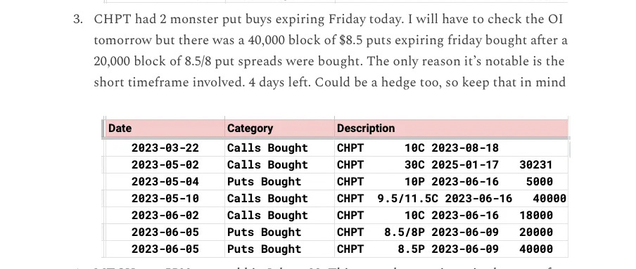 What’s more interesting to me is this week in Monday’s recap here I had noted some serious put buying on CHPT that was expiring today
