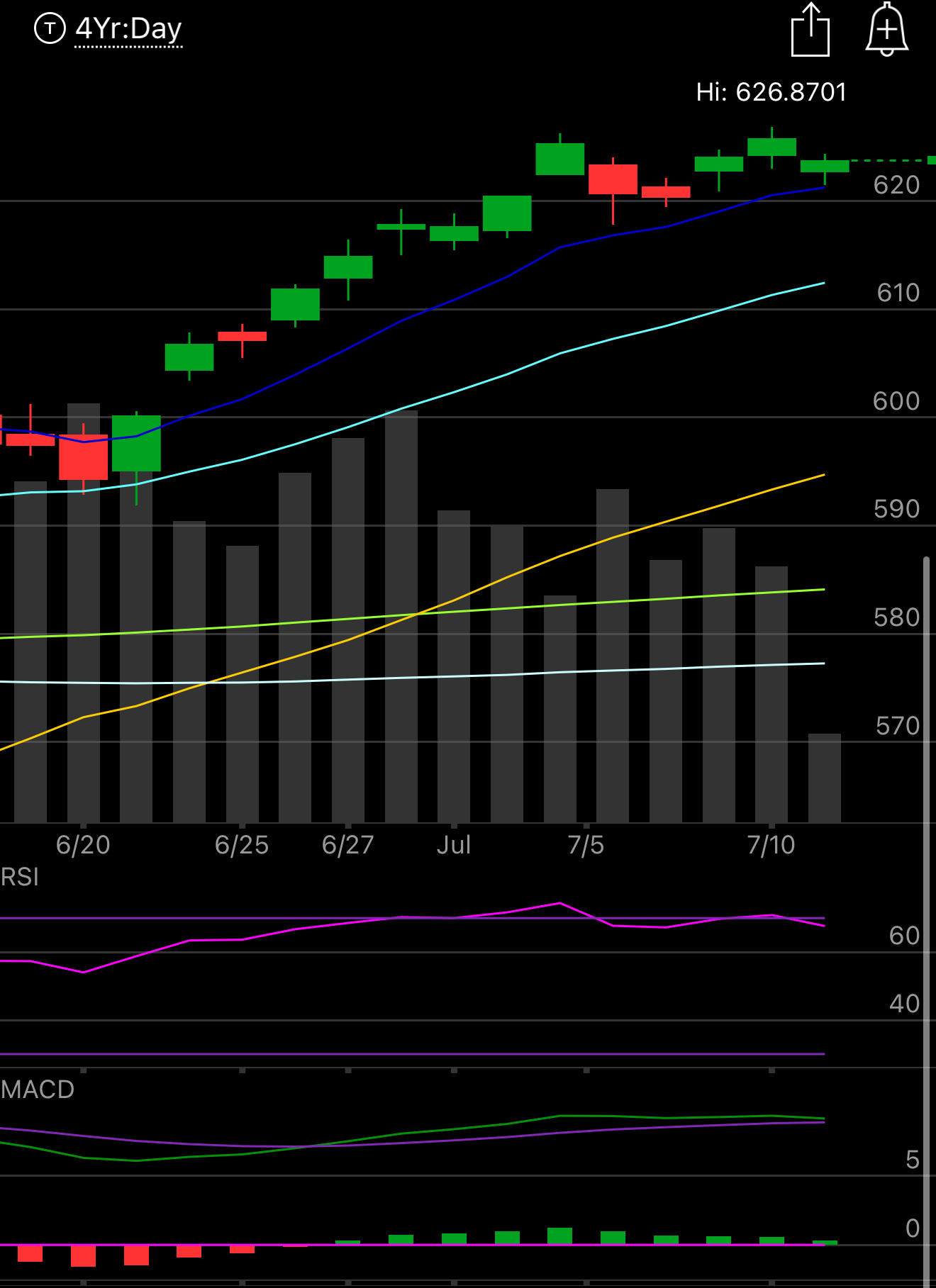 The SPY has held up fairly well considering how much we were down overnight on the initial shock of the Canada tariff news. After a deeper look it seemed like the tariffs mostly impacted nothing and the market came down, tested the 8 ema and so far has held. The megacaps are really leading the way with NVDA,AMZN,GOOG showing serious strength at the top. We’re now in day 6 of the sideways move and the 21 ema has moved up so much that it is now less than 2% away. This healthy consolidation is what you want to see if you’re bullish.