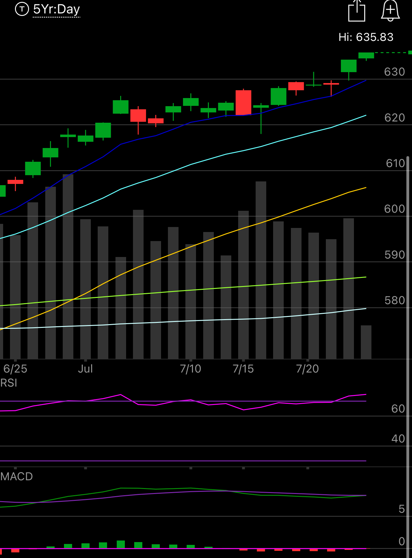 The SPY is melting up, I really have nothing to add here, like I’ve been saying for week we are just riding this 8 ema higher. There will come a time we break that 8 ema and caution will be warranted then, but for now, you have to be long this chart is clear as day with that smooth ride up over the dark blue line.