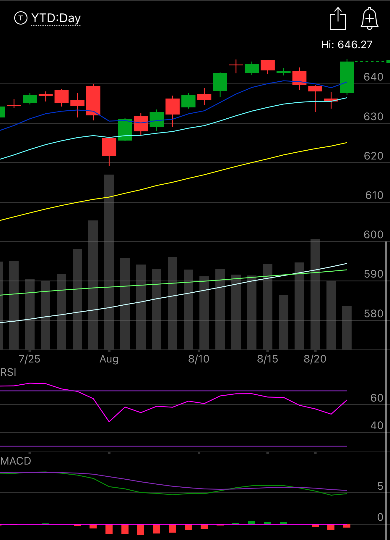 The SPY broke out to new highs today, look how it continued to cling onto that 21 day yesterday to give everyone max anxiety coming into today and the reaction to Jackson Hole was a sharp move higher. The market held up right where it was supposed to both times it broke below the 21 day this week and we got that move up today. So yesterday was a complete headfake with everything breaking down and rates rising right before they all reversed today.