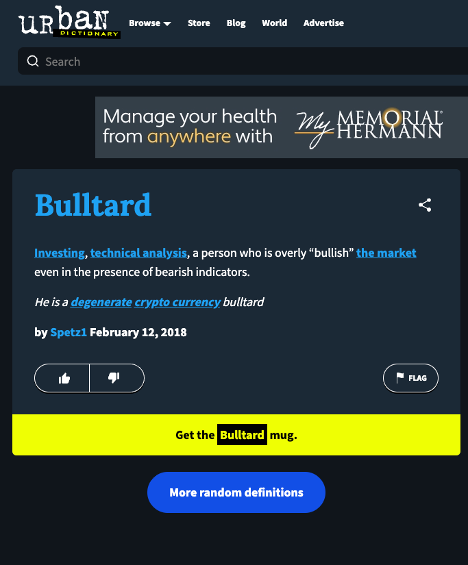 What is the lesson in all of this? You see my book everyday, as cautious as I sound I’m still incredibly levered up. I’m telling you to be cautious in case you are using leverage I don’t want you to blow up and you have to learn to lighten up the risk on technical breakdowns and I do, but you almost always have to be long because the market is up 90% of days. The moments you should be cautious, it almost feels like in recent years are when markets snap right back. That’s what is so hard about being bearish or a technical trader, if you really respect the moving averages and de-risk where you’re supposed to you miss out on these moves like today. As you know my name isn’t James Bulltard, but what is a bulltard, well the definition sums up today perfectly, a person who is bullish in the presence of bearish indicators.