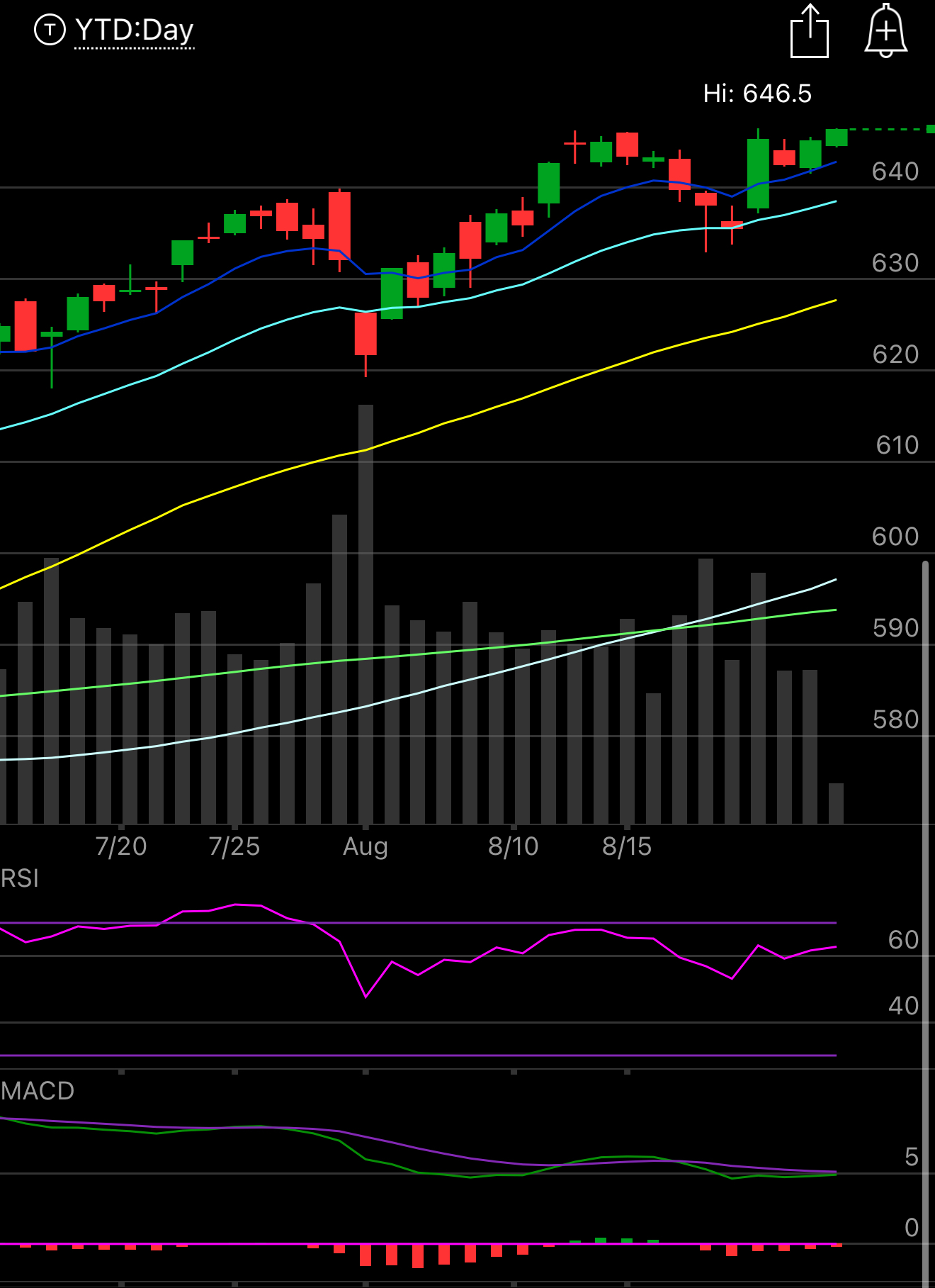 The SPY continues that slow grind up over the 8 ema, today is going to be a big mover, NVDA reporting is 8% of the market so we will get a big move unless NVDA itself is flat. The big thing to watch here is the 21 ema is just 1% lower, we easily could break that tonight if NVDA dumps hard. In that event you would probably want to exit alot of things tomorrow or just de-risk right now if you don’t want to take risk. We all know that NVDA should post great numbers, they should be able to sell all they can build for a long time, the one concern from many is how will they guide in regards to China. If they have a strong reaction the market is going to open at new all time highs and if they don’t, because we’ve consolidated for so long, we will be breaking down again likely headed to that 50 day just under 630 and rising.