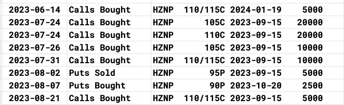 HZNP was another that popped 5.5% today that caught my eye, I had noted it multiple times the last few weeks and it went right over 113 at its highs of the day, a big win for all those call buyers.