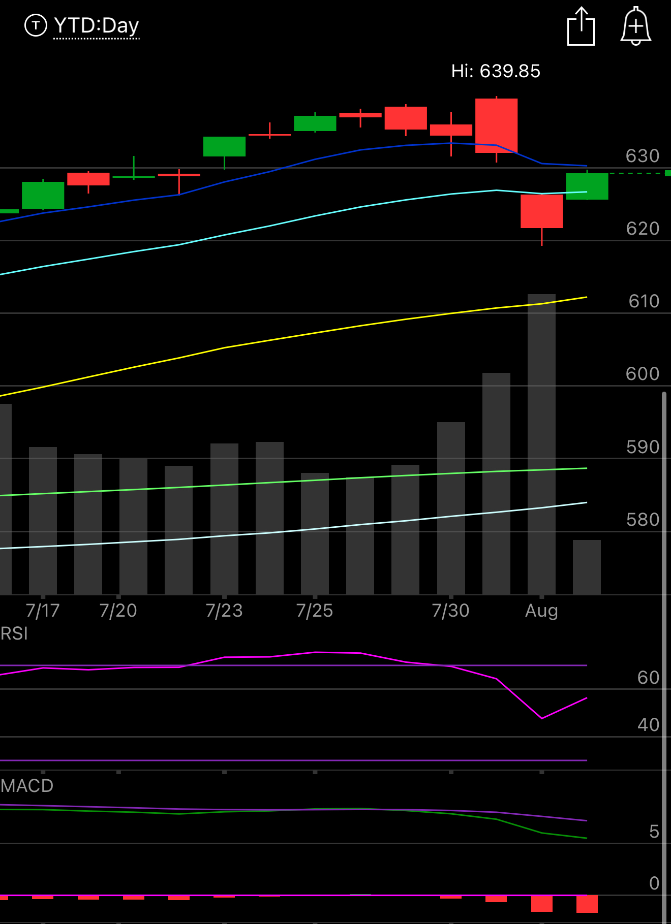 The SPY shockingly bounced back over the 21 ema after taking over 3 months to close below it. Is it bullish again, I don’t want to say yes because we’re still stuck below that 8 ema and that’s right where the selling today took place. I would say unless you’re really in need of catching up to the market, you can go long with stops if that 21 ema breaks again but for me, I’m perfectly content giving this a little time and waiting before I really press all my leverage again. As you saw last week, my idea of bearish means simply toning down the leverage that’s about it, I’m never really a bear or all cash, I just move to things like TLT and have less tech put sales on that’s about it. Usually when that 21 ema breaks it is a bearish trend beginning but this market is something else in 2025 and we spent 1 whole day under the 21 ema since April 24th and it was immediately bought up. It’s really hard to be bearish in that tape, but you have to be mindful that we are not out of the woods yet with that 8 ema at 630.21 blocking us for now. For me to say we’re in the clear I’d need to see a new high over 639.85 until then anything we do is possibly setting up a lower high.