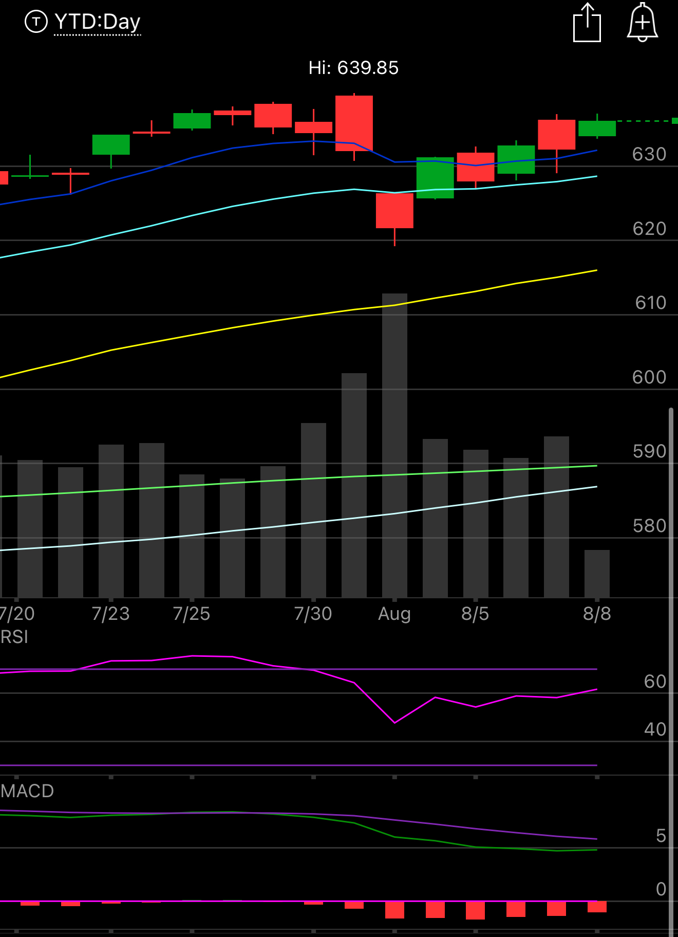 The SPY continues this push higher over the 8 ema, we’re getting close to previous highs at 639.85. This has been a great snapback after last friday’s breakdown and with megacap laggards like Apple finally picking up steam, I’m not sure what is going to bring this lower. You need the megacaps to start cracking for a down move and literally all of them, even tesla, are looking very good right now. Jackson Hole in 2 weeks is probably the bears next potential catalyst lower. We still remain as extended from the 21 week as we’ve been in years.