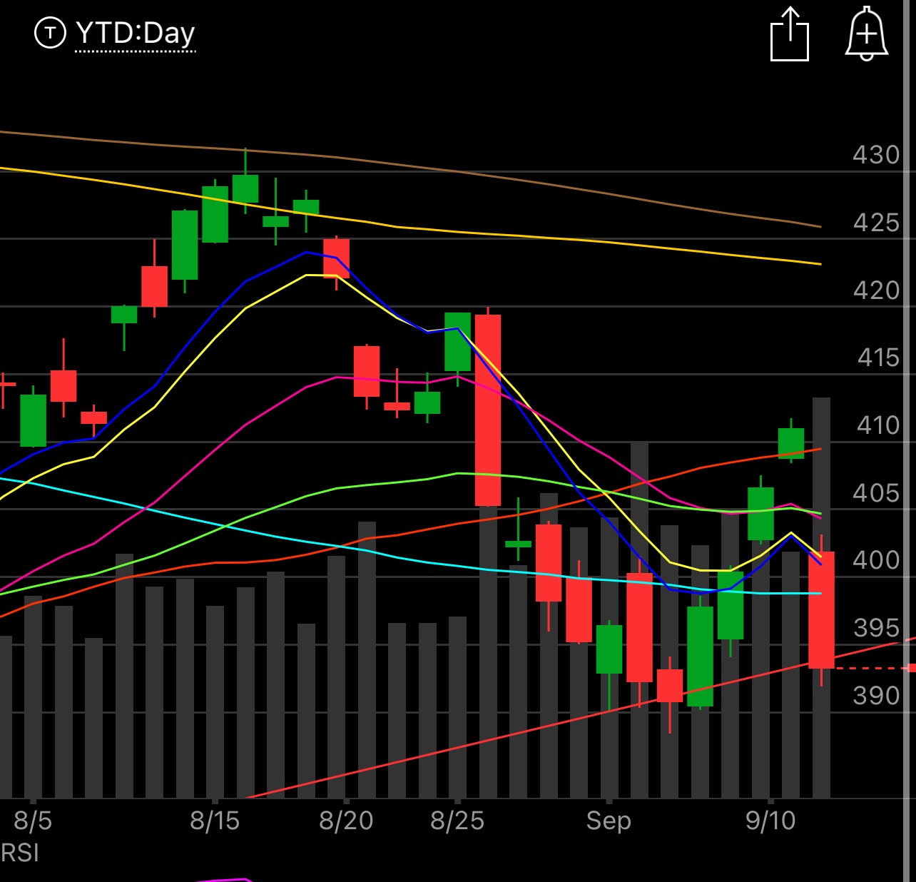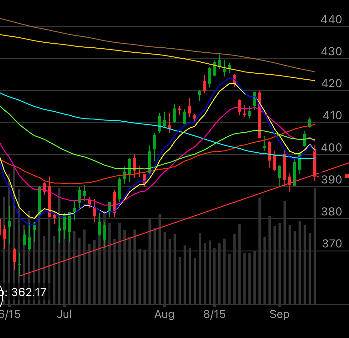 What you will notice is the SPY closed below the uptrend from the June lows, that’s not ideal, now we did this a couple days back and snapped right back, but this time feels different, keep an eye on it. You can see below, the second chart is just a zoomed in look at a shorter timeframe. To me, this doesn’t scream anything bullish breaking a 3 month uptrend, but to each their own, that’s what makes a market.